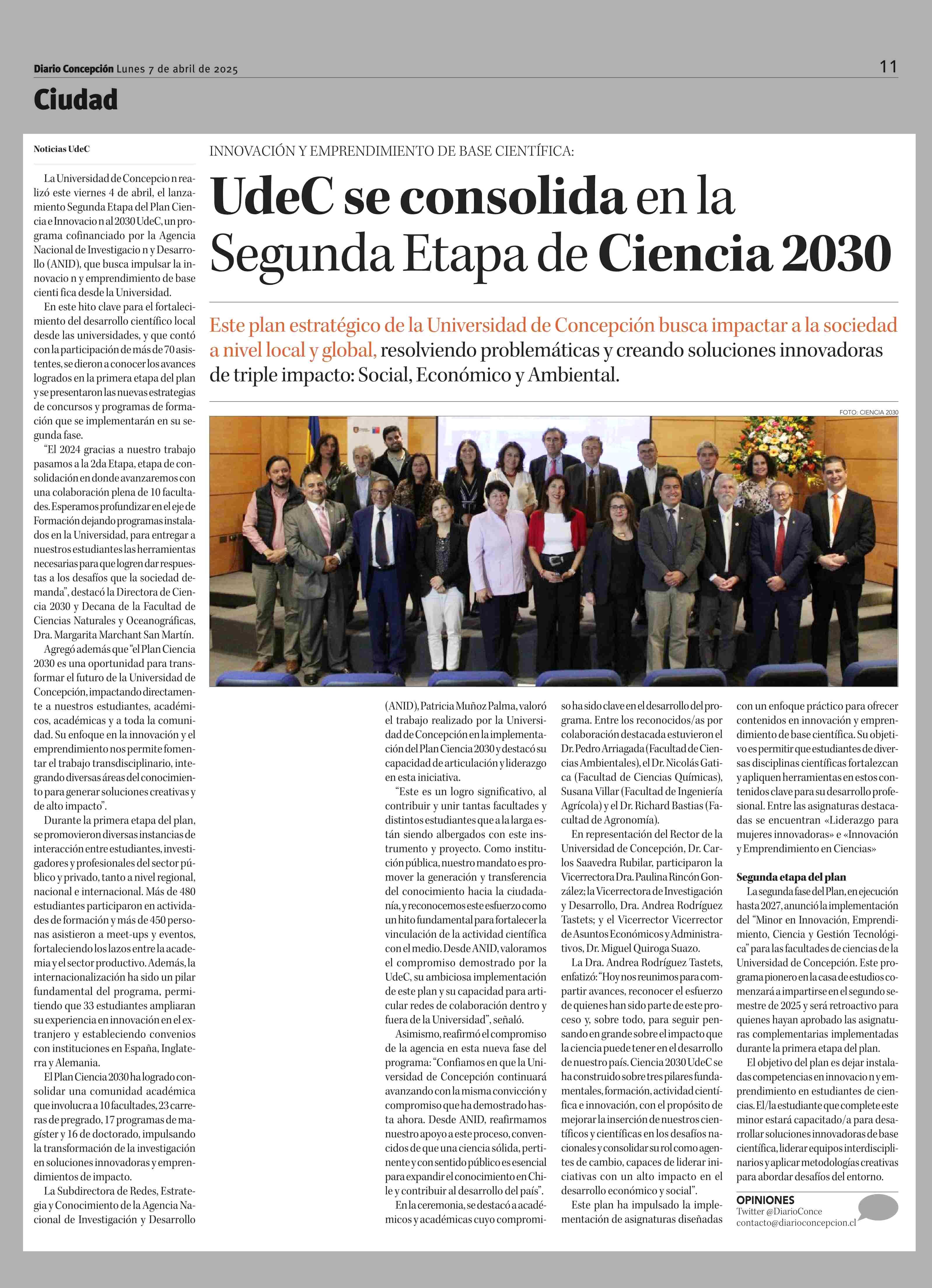 UdeC se consolida en la Segunda Etapa de Ciencia 2030 07-04-2025 Diario Concepción |