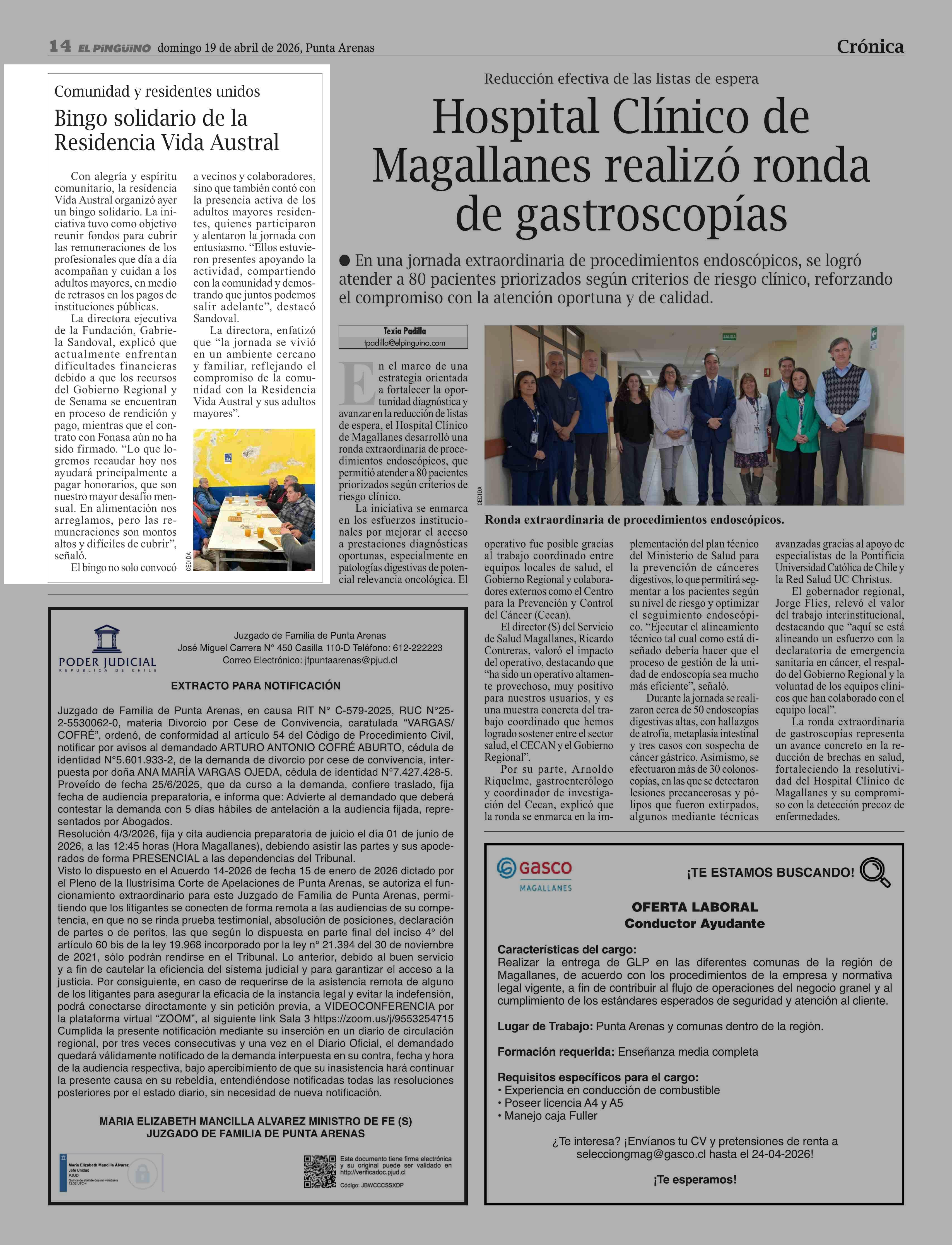 Fecha: 19-04-2026 Sector: Noticia general Región: Región de Magallanes y de la Antártica Chilena