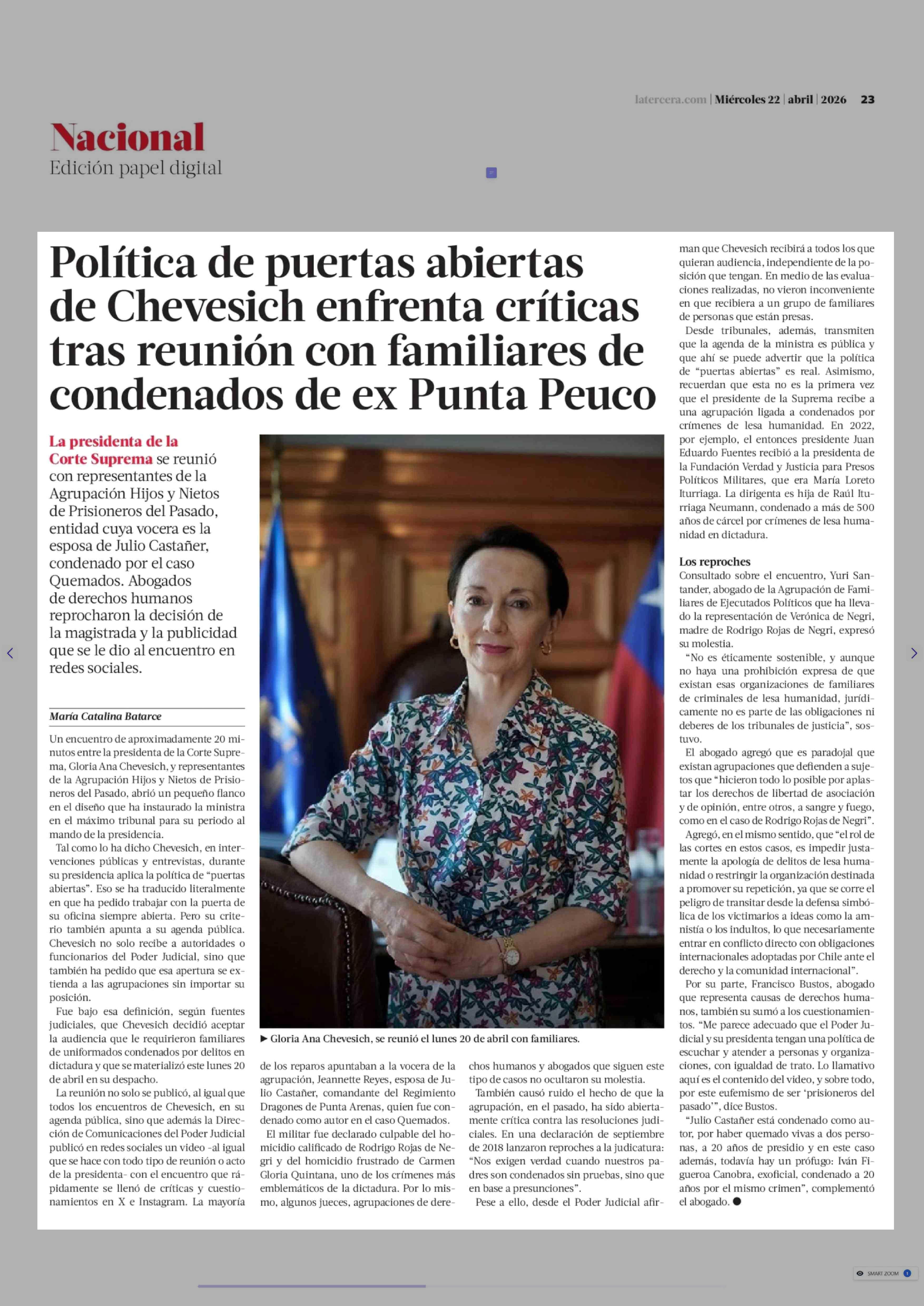 Política de puertas abiertas de Chevesich enfrenta críticas tras reunión con familiares de condenados de ex Punta Peuco 22-04-2026 La Tercera |