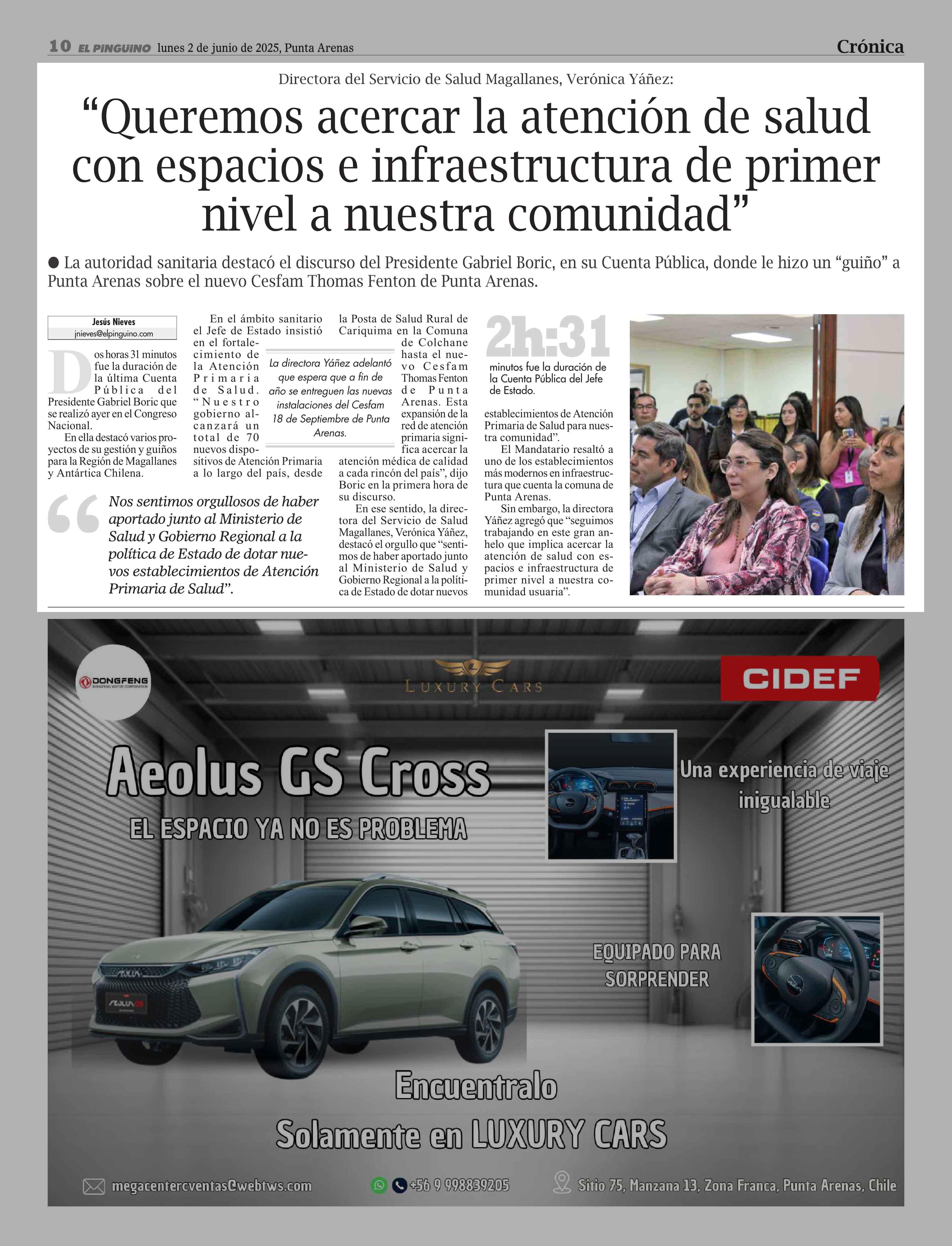 | Fecha: | 02-06-2025 | Sector: | Noticia general | Región: | Región de Magallanes y de la Antártica Chilena |