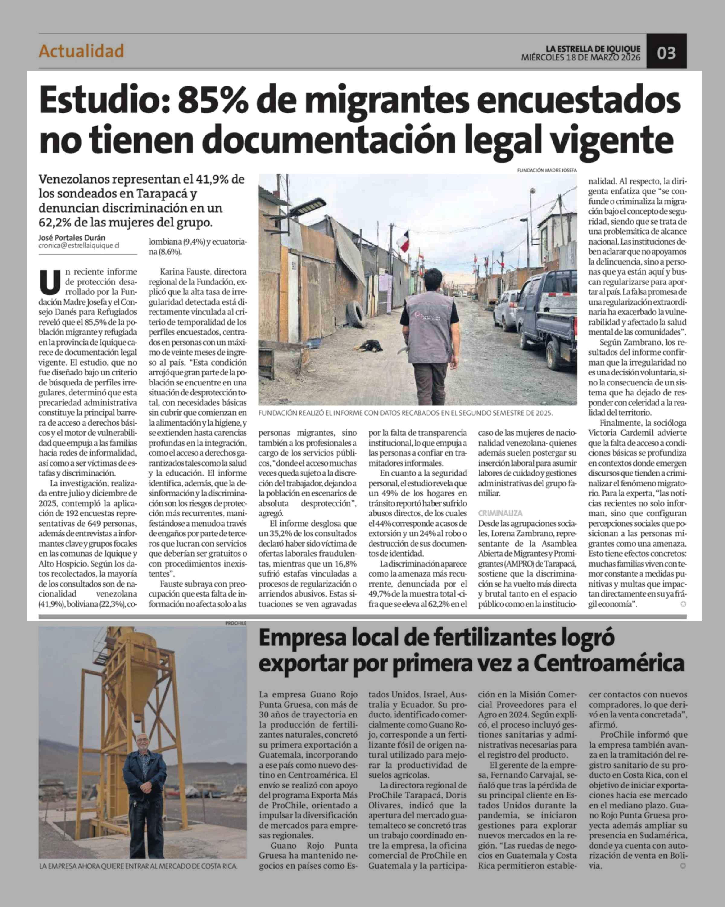 Fecha: 18-03-2026 Sector: Noticia general Región: Región de Tarapacá