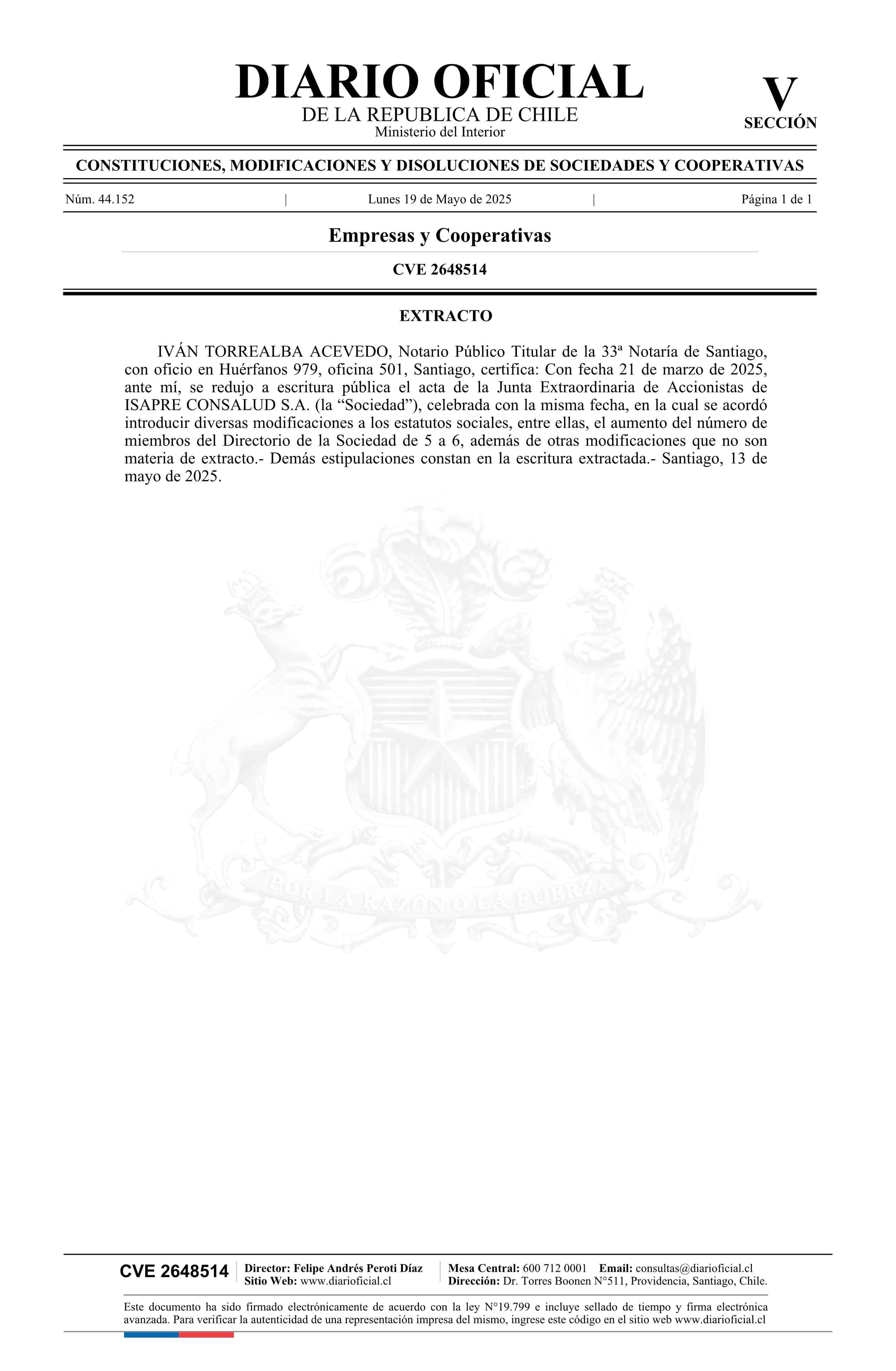 Isapre Consalud S.A. 96.856.780-2 19-05-2025 Diario Oficial Edición Electrónica |