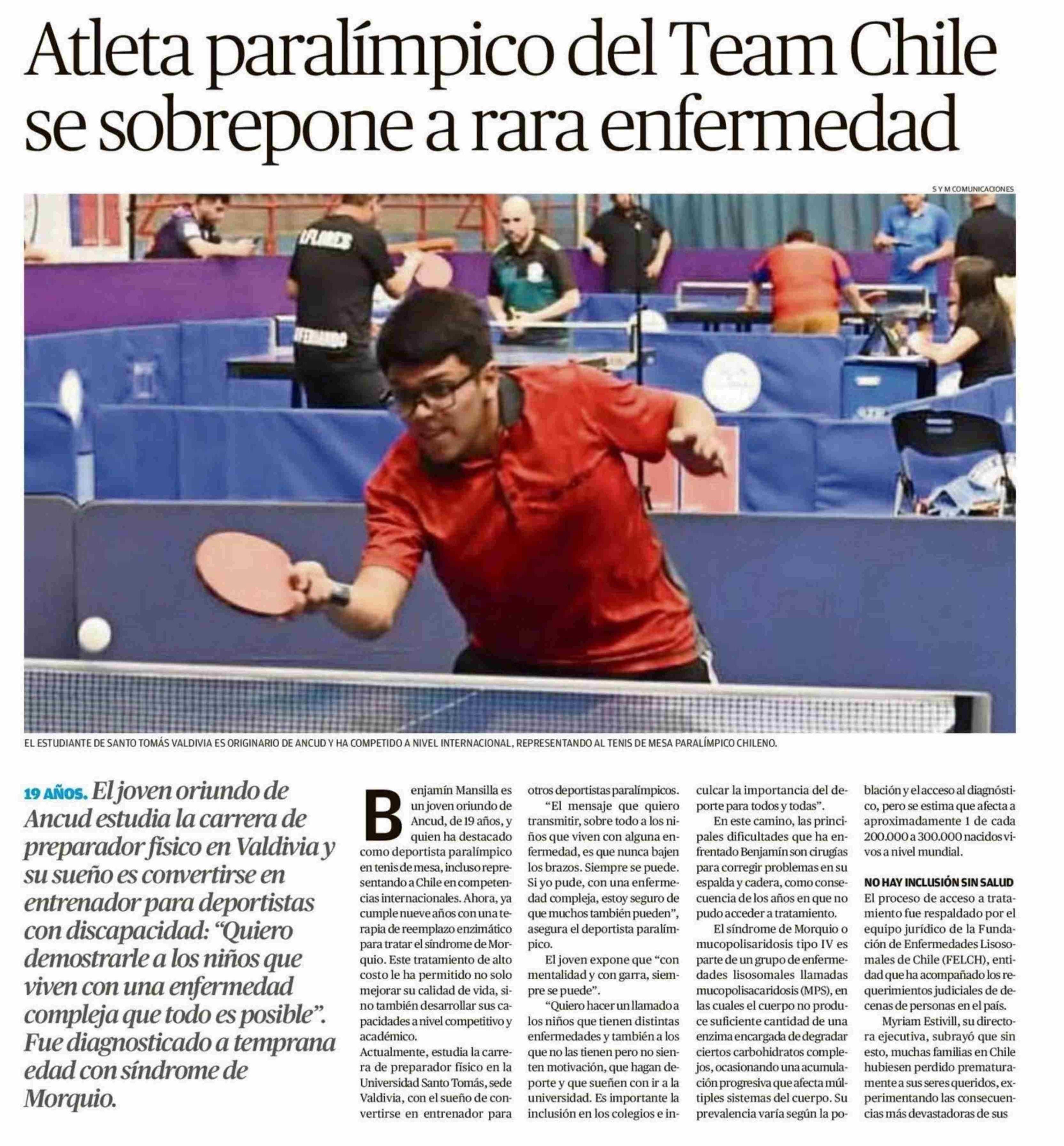 Título: Atleta paralímpico del Team Chile se sobrepone a rara enfermedad