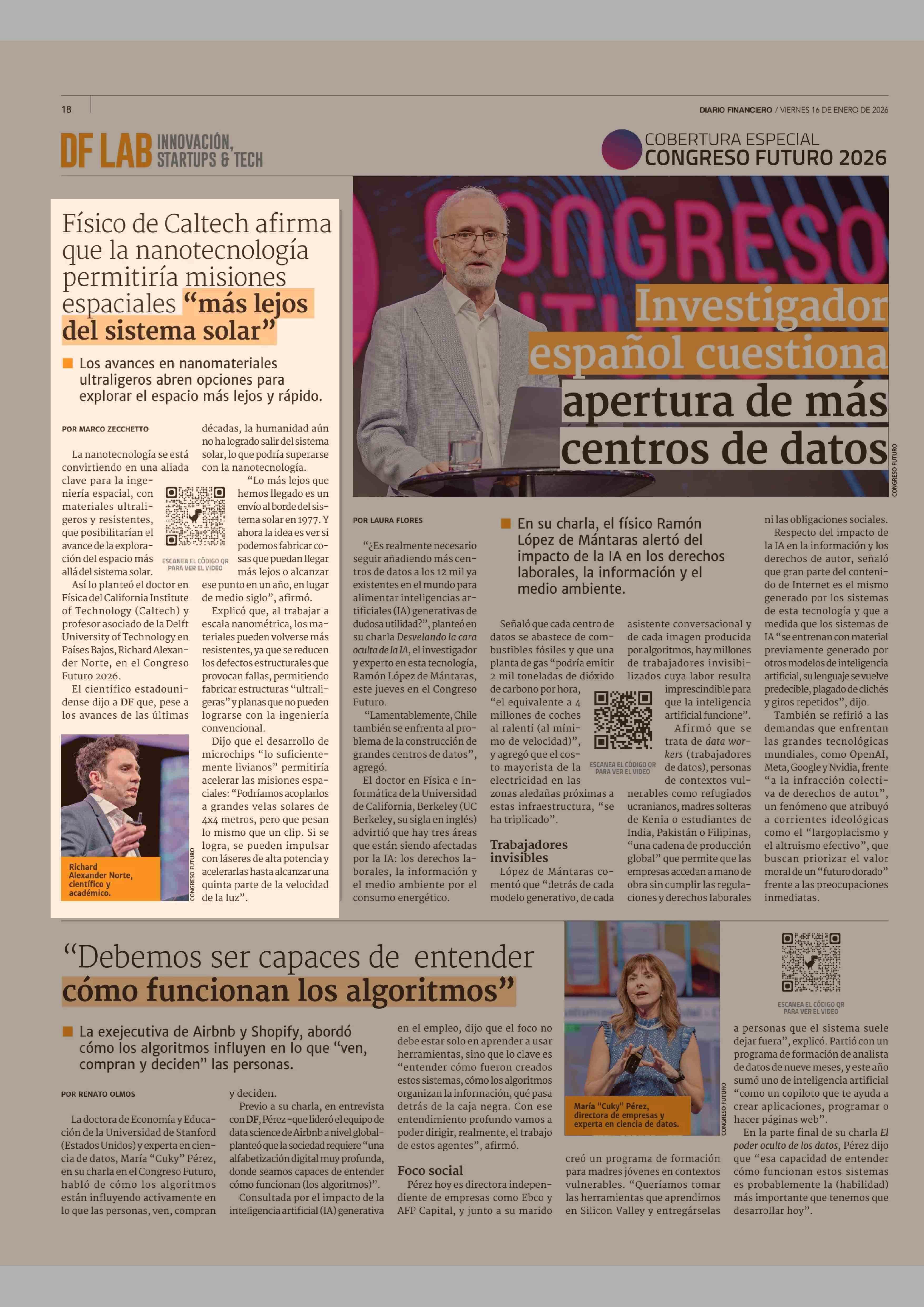 Físico de Caltech afirma que la nanotecnología permitiría misiones espaciales "más lejos del sistema solar" 16-01-2026 Diario Financiero |