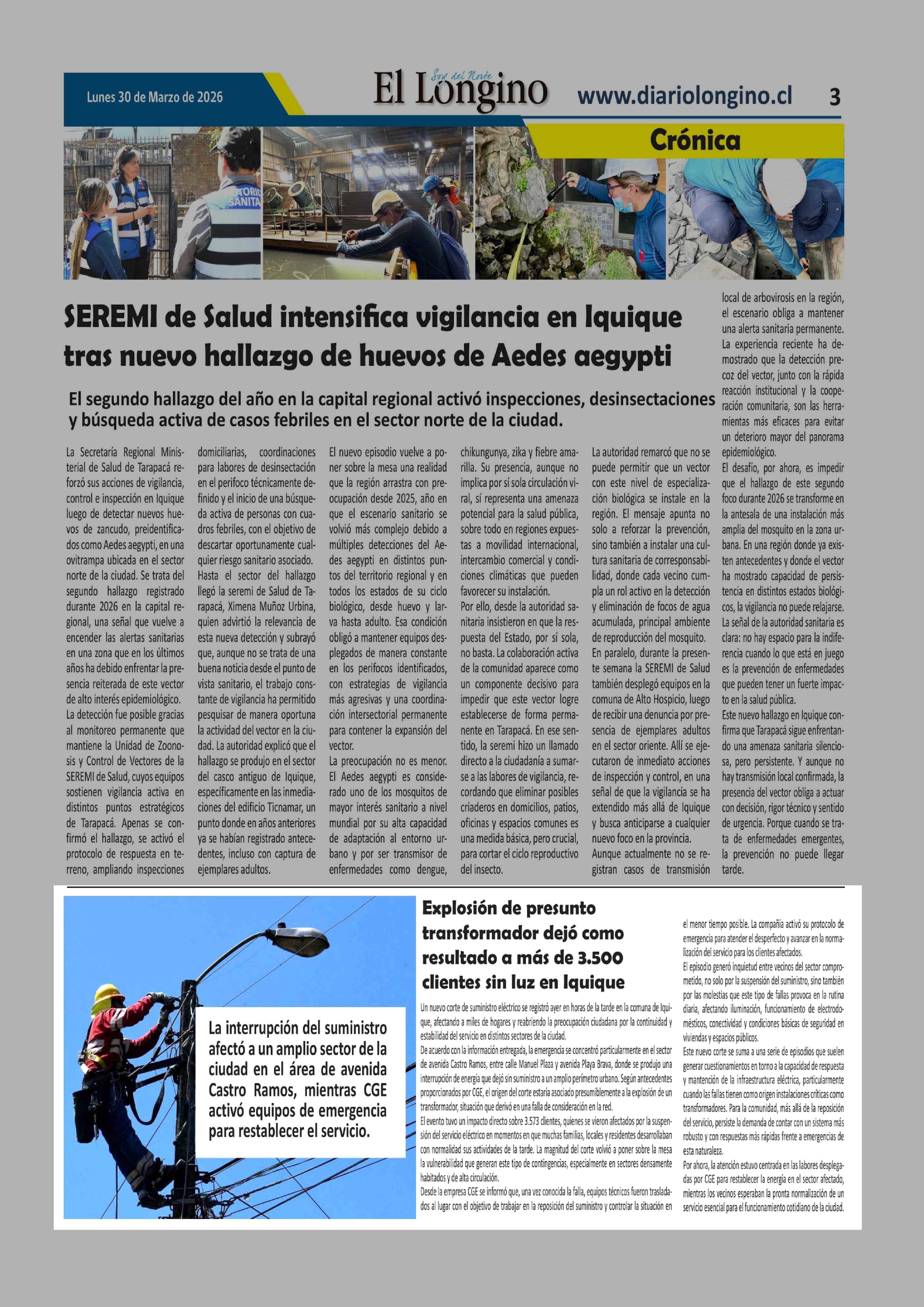 | Fecha: | 30-03-2026 | Sector: | Noticia general | Región: | Región de Tarapacá |