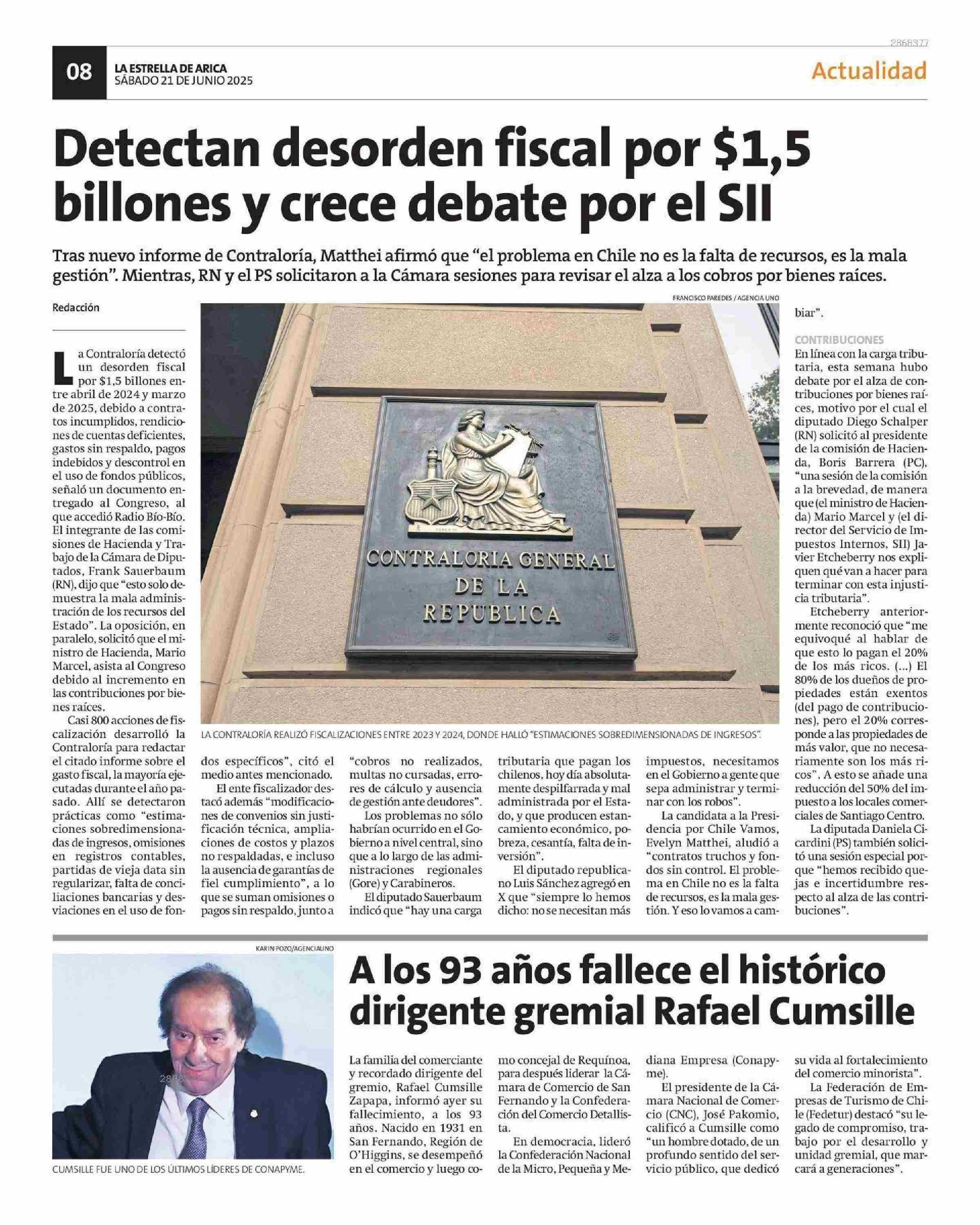 A los 93 años fallece el histórico dirigente gremial Rafael Cumsille 21-06-2025 La Estrella de Arica |