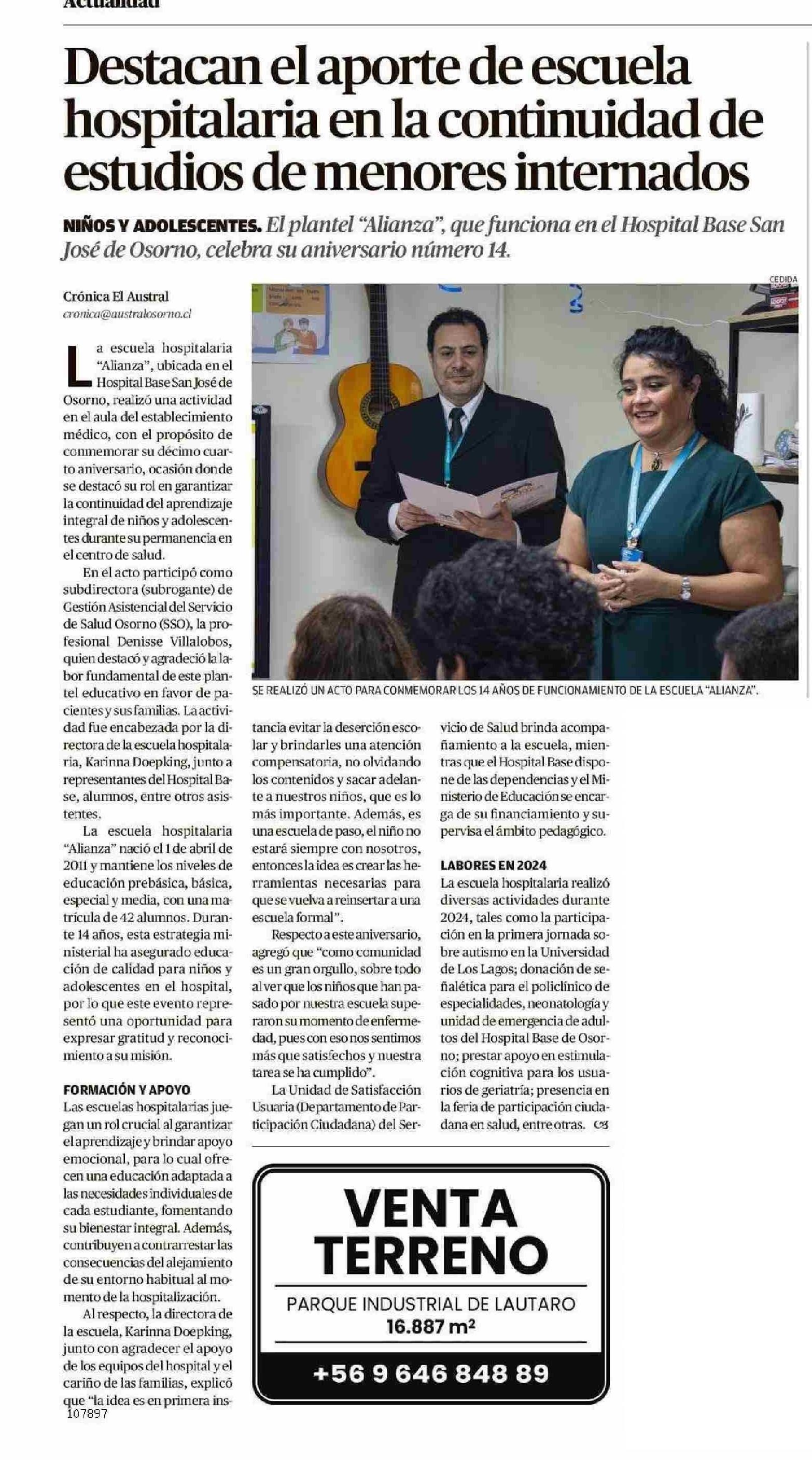 Título: Destacan el aporte de escuela hospitalaria en la continuidad de estudios de menores internados