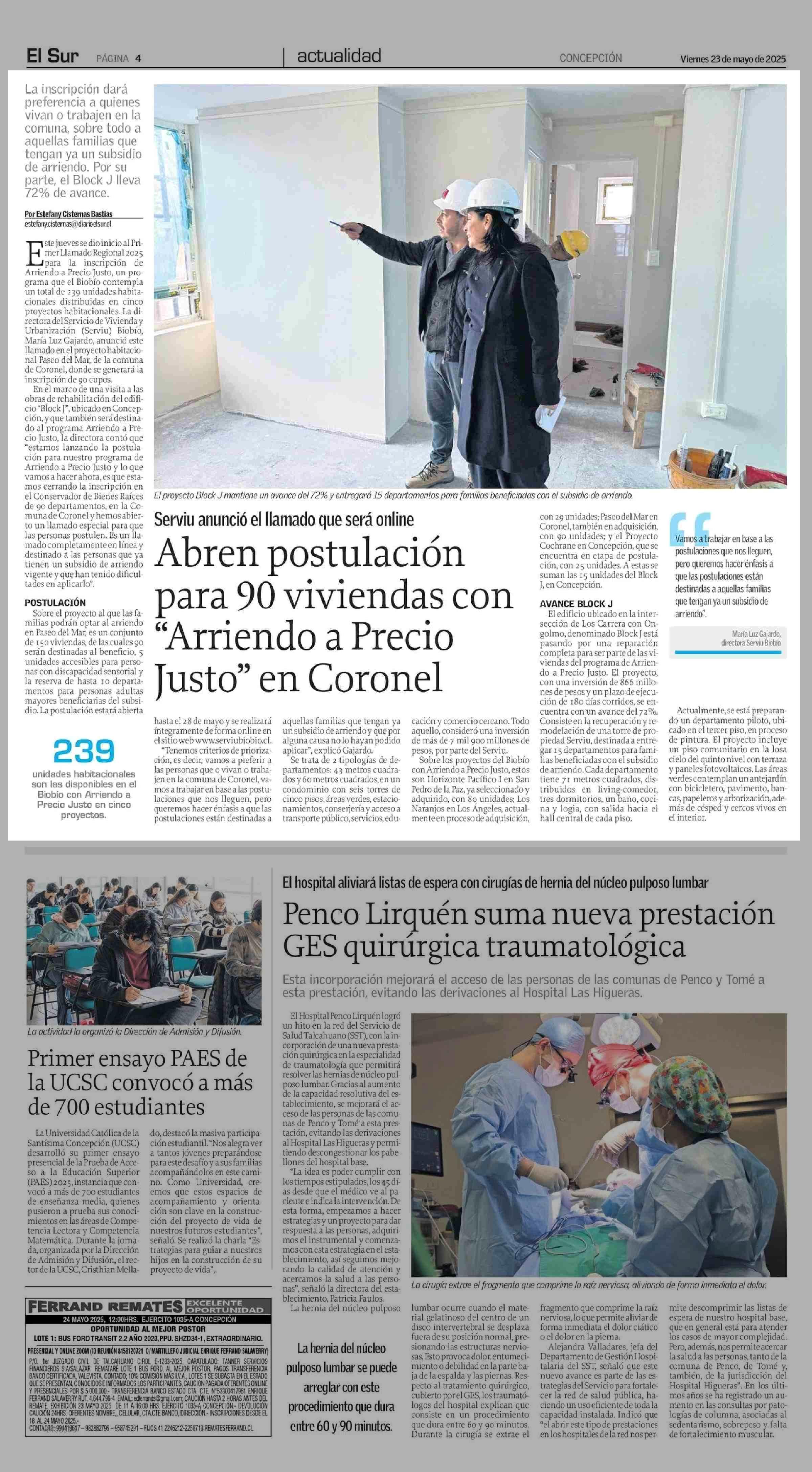 Abren postulación para 90 viviendas con “Arriendo a Precio Justo” en Coronel 23-05-2025 El Sur |
