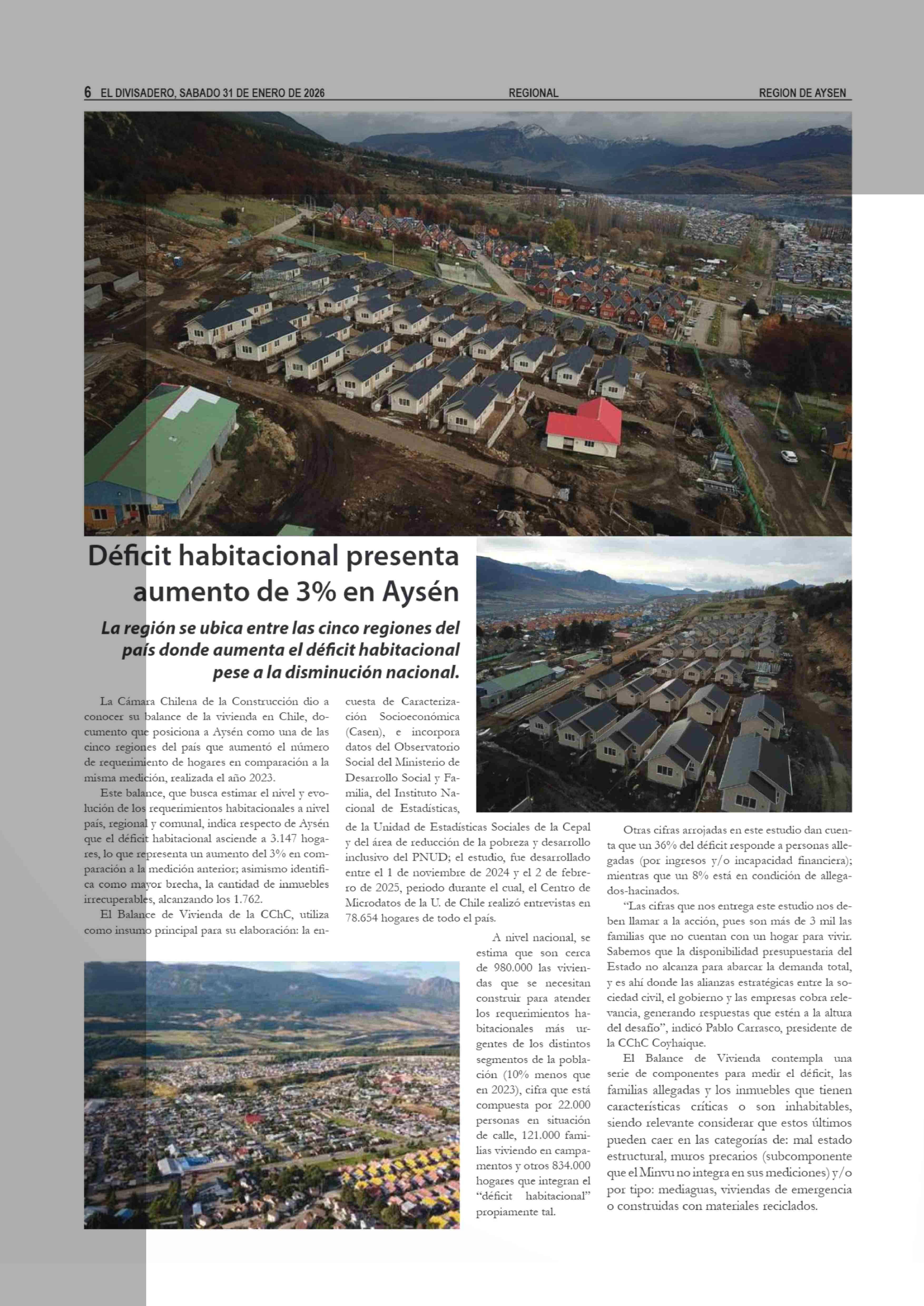 Déficit habitacional presenta aumento de 3% en Aysén 31-01-2026 El Divisadero |
