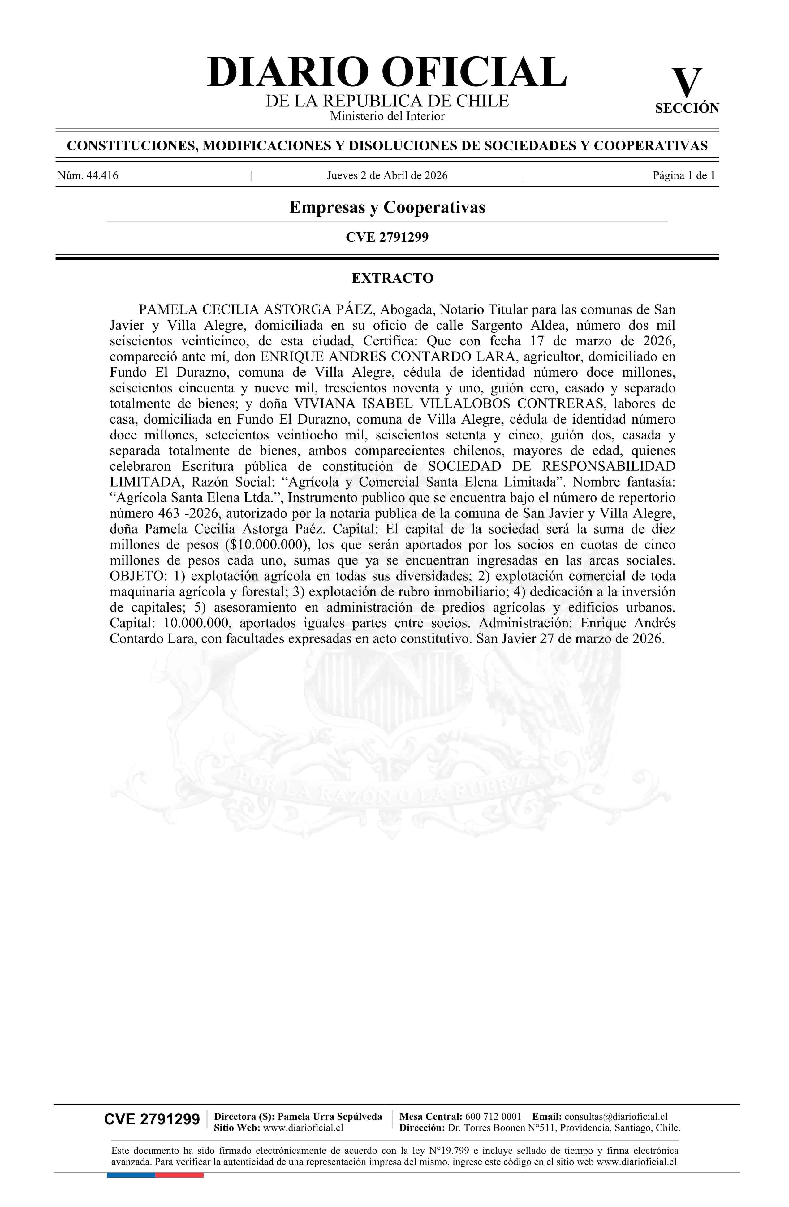 Fuente: Diario Oficial Edición Electrónica (Diario Oficial de Chile - 5 Empresas Y Cooper) Página(s): 1
