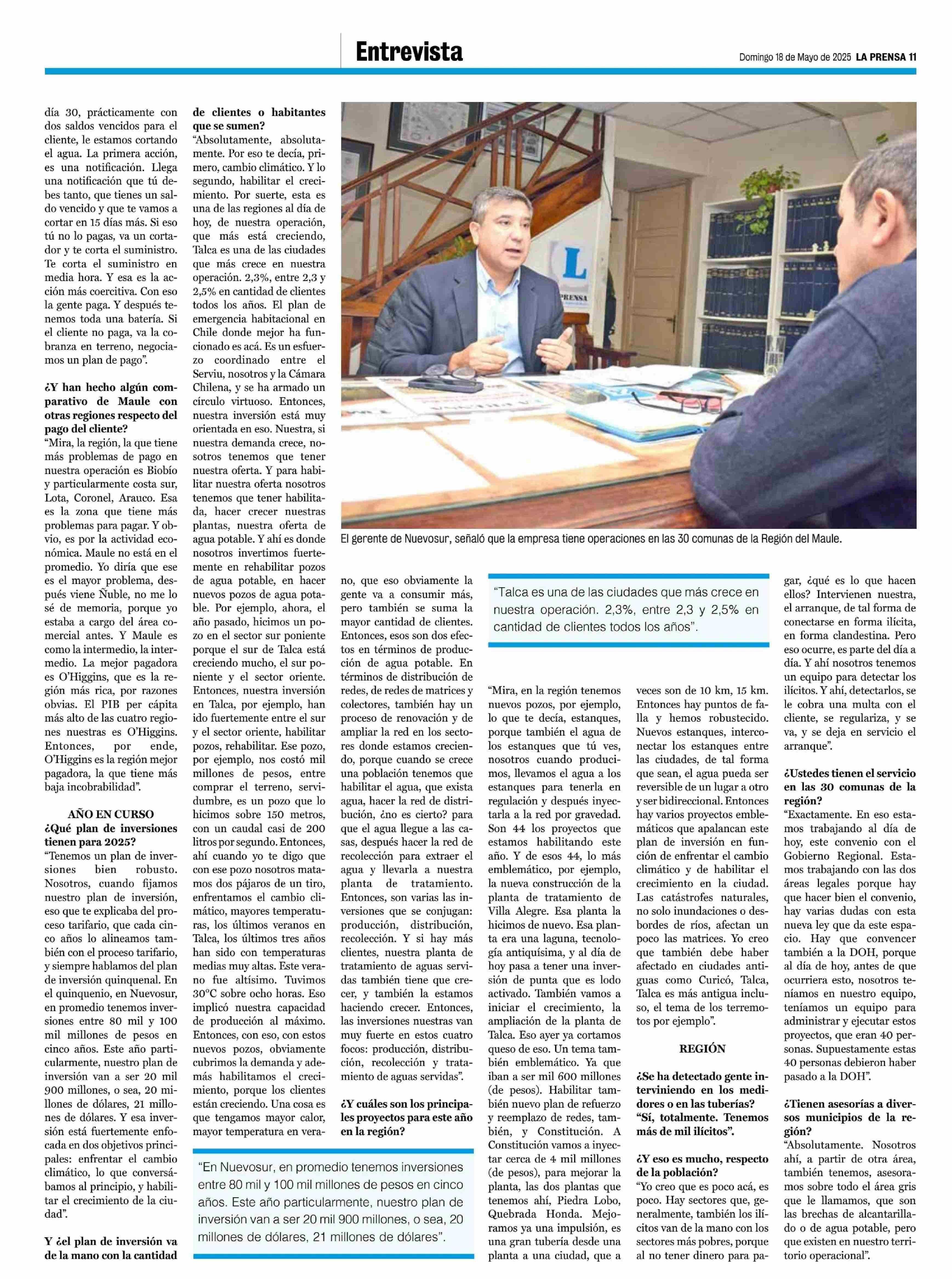 “En el Maule tenemos 320 mil clientes pero atendemos a 800 mil personas” 18-05-2025 La Prensa de Curicó |