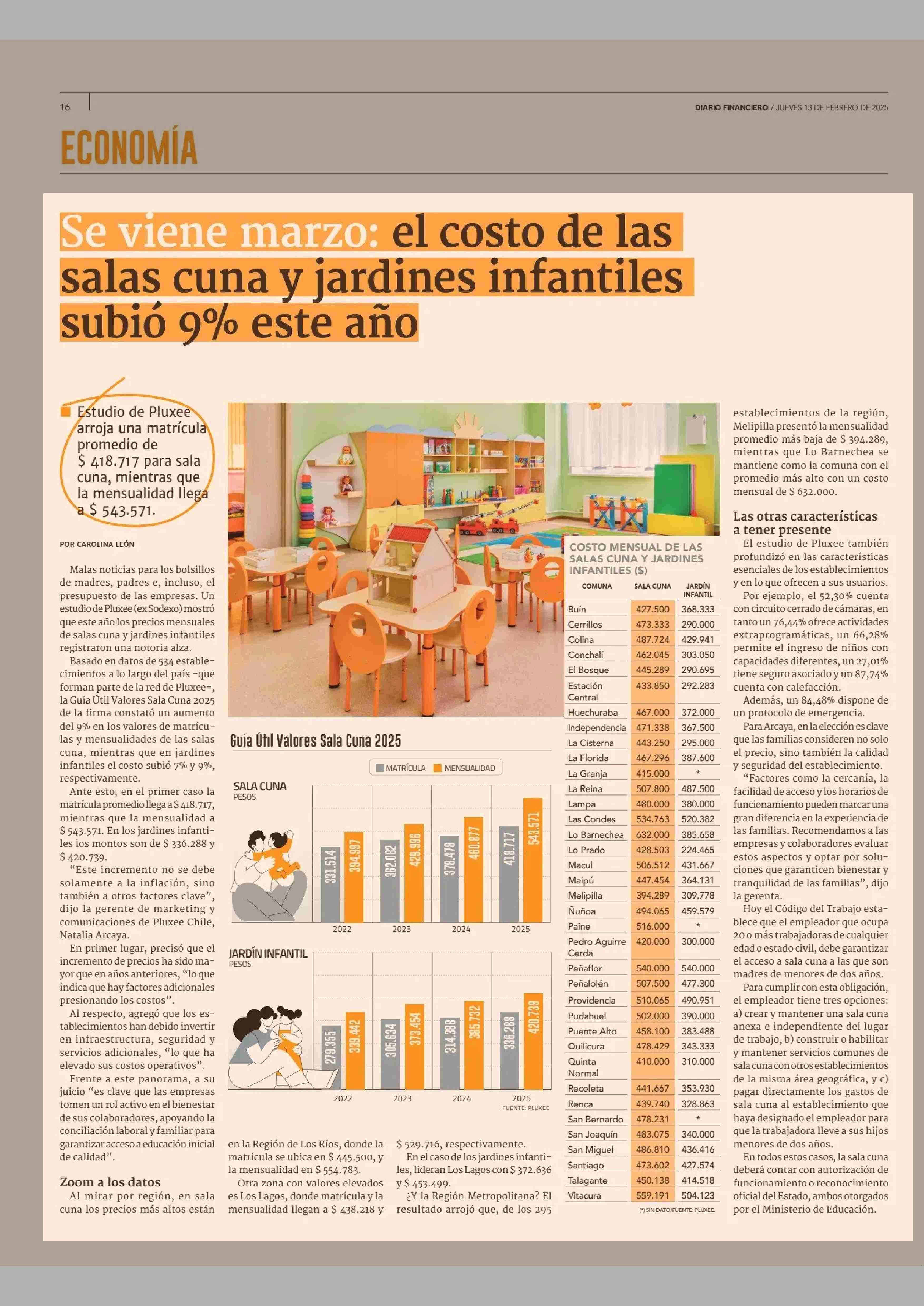 Se viene marzo: el costo de las salas cuna y jardínes infantiles subió 9% este año 13-02-2025 Diario Financiero |