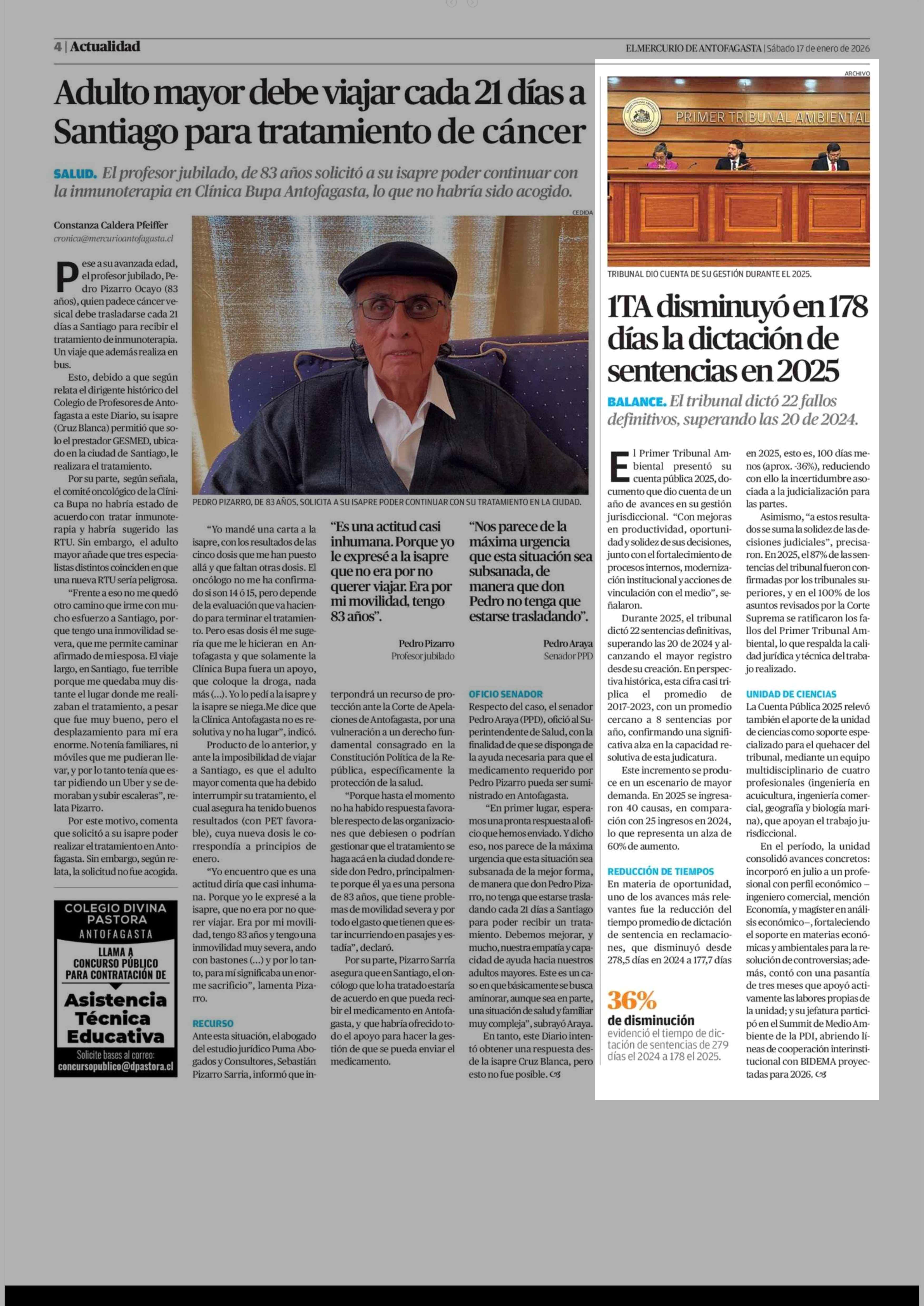 1TA disminuyó en 178 días la dictación de sentencias en 2025 17-01-2026 El Mercurio de Antofagasta |