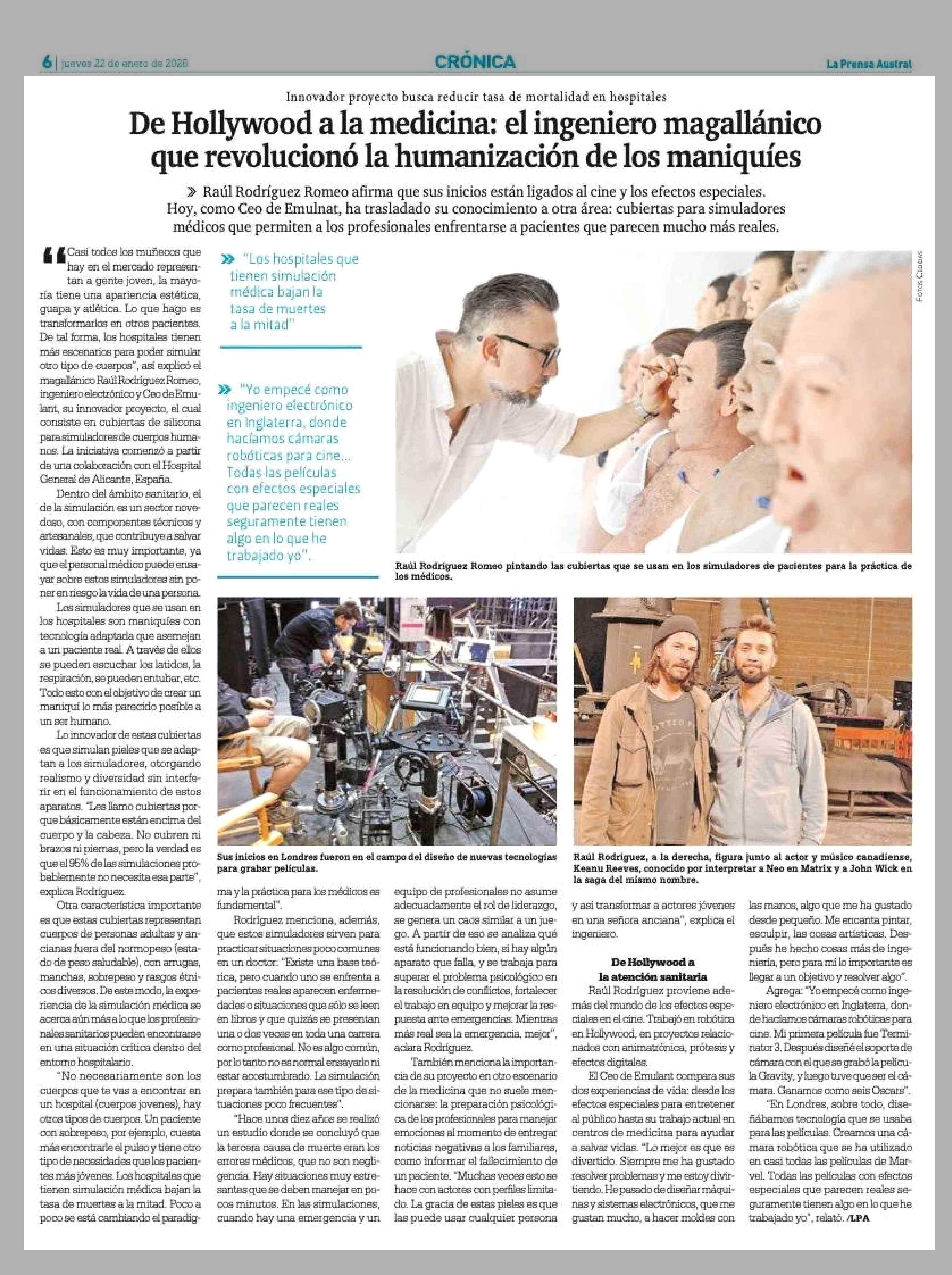 De Hollywood a la medicina: el ingeniero magallánico que revolucionó la humanización de los maniquíes 22-01-2026 La Prensa Austral |
