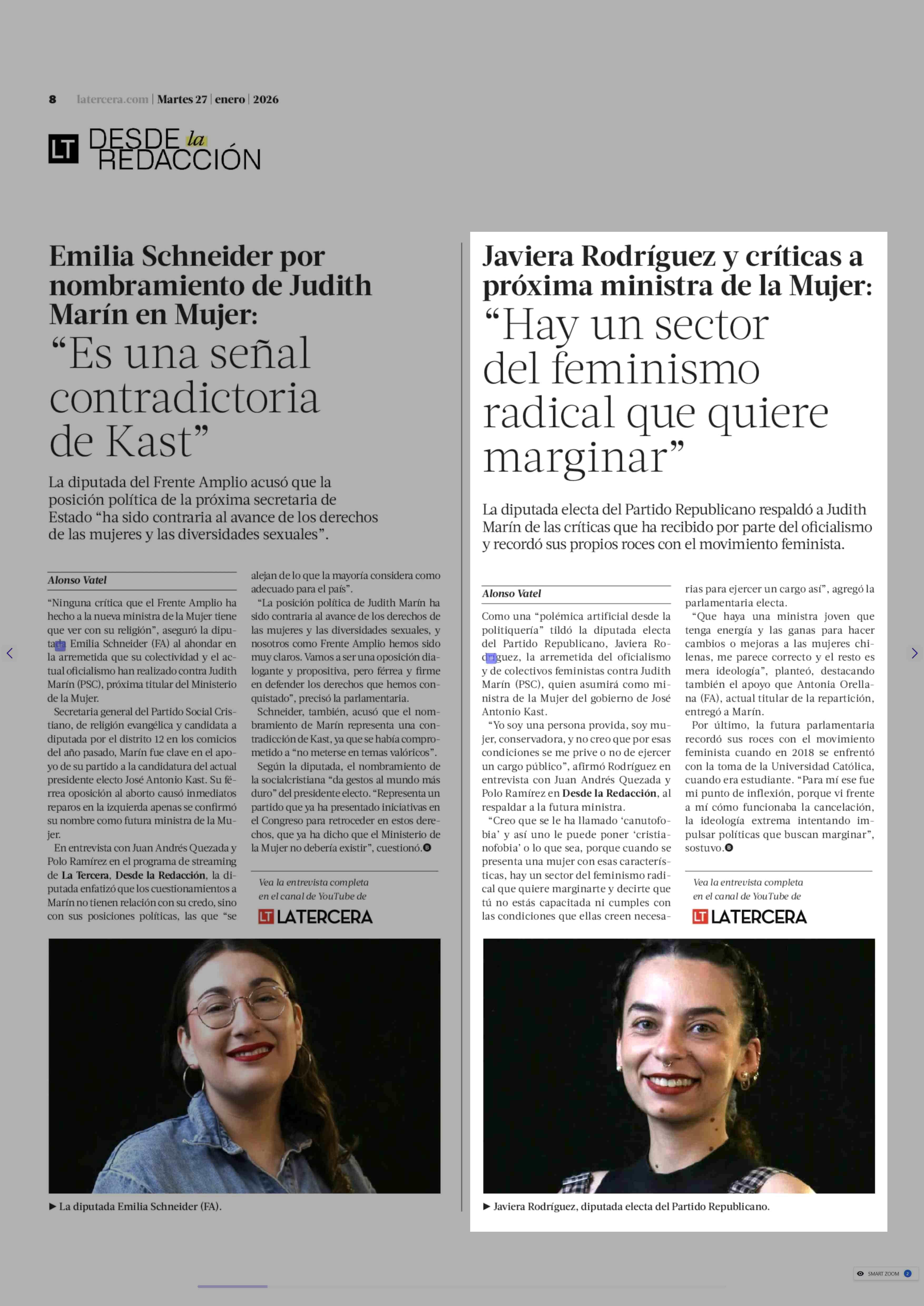 Título: Javiera Rodríguez y críticas a próxima ministra de la Mujer: "Hay un sector del feminismo radical que quiere marginar"