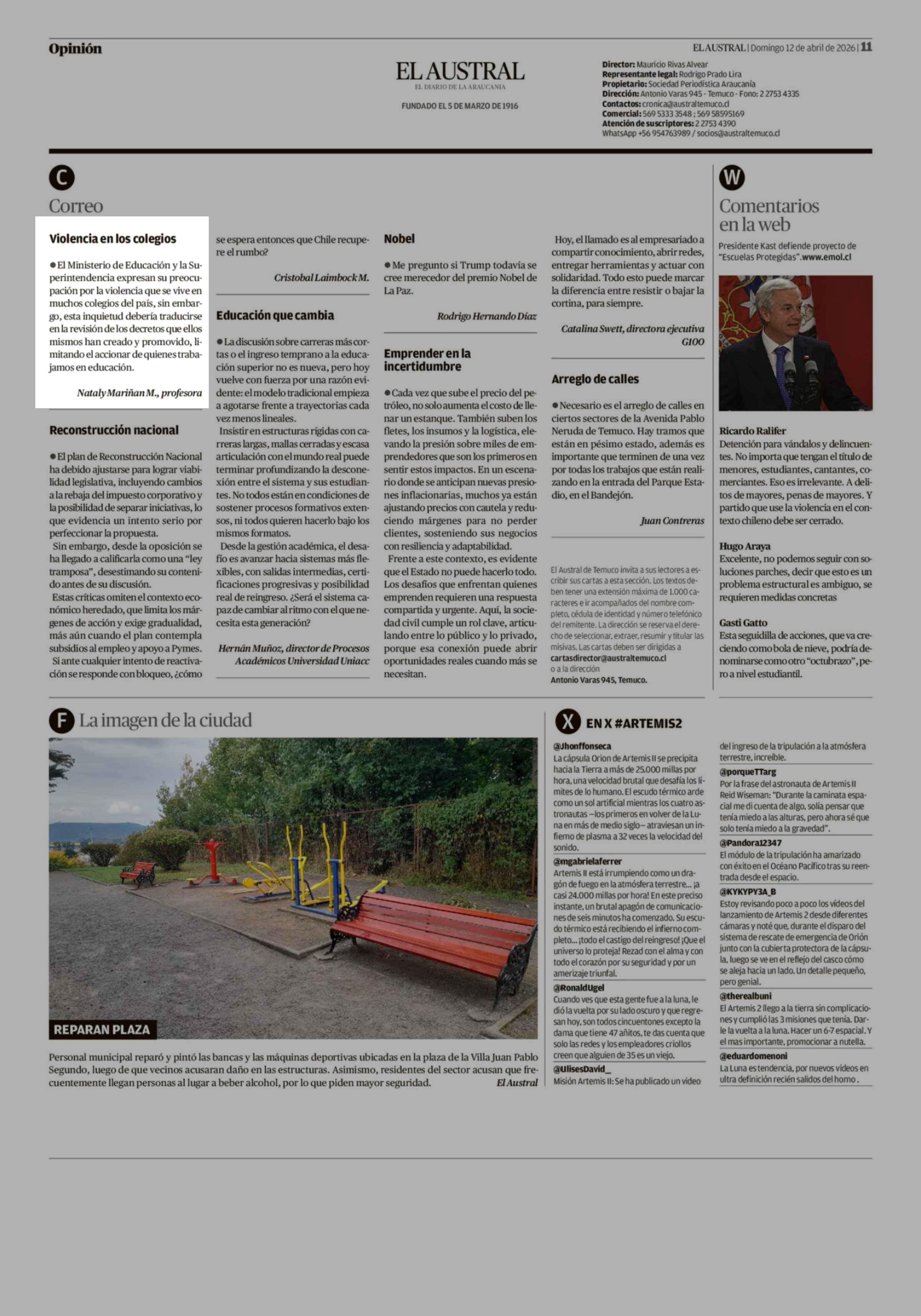Fuente: El Austral de la Araucanía (El Austral de la Araucanía) Página(s): 11