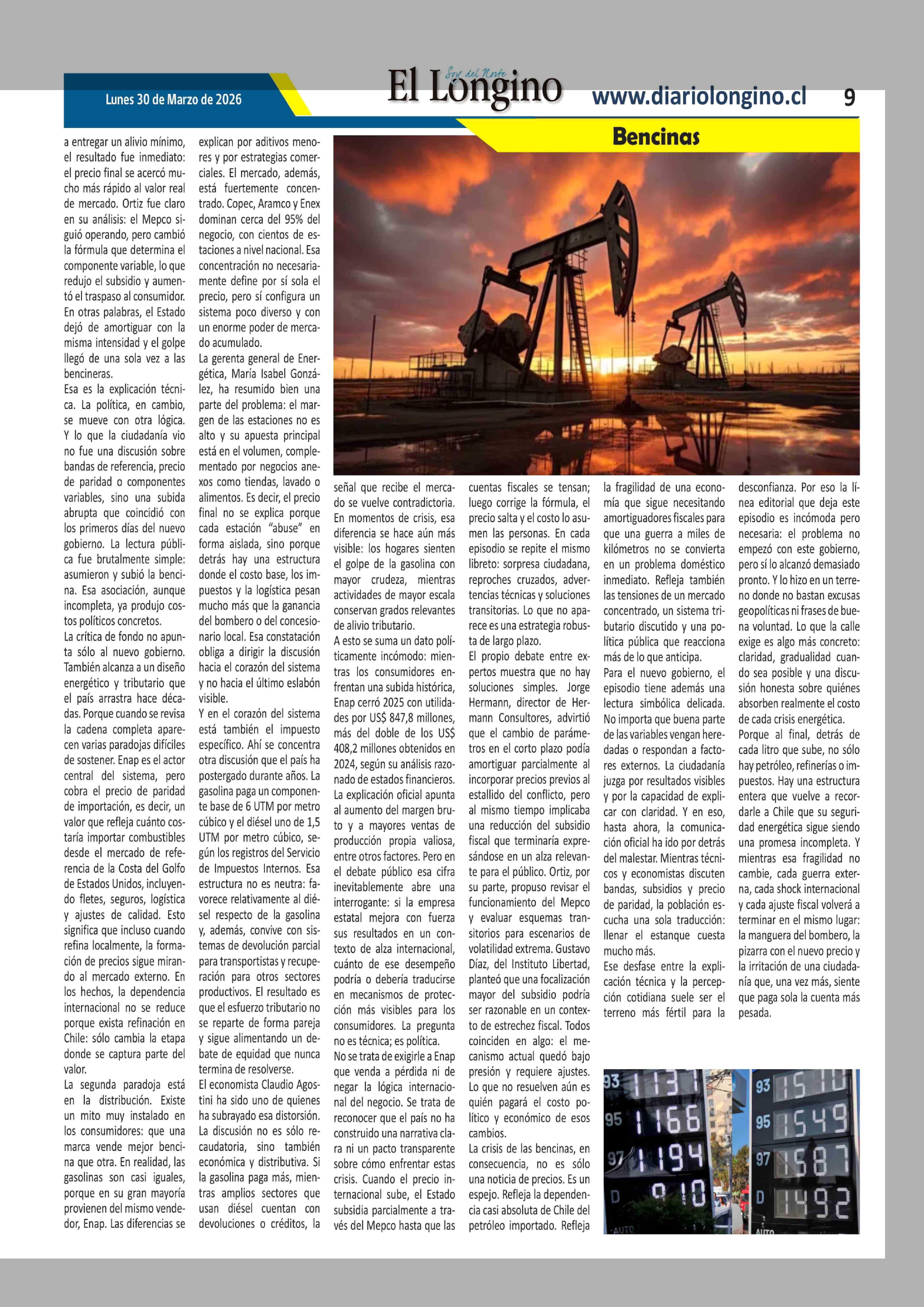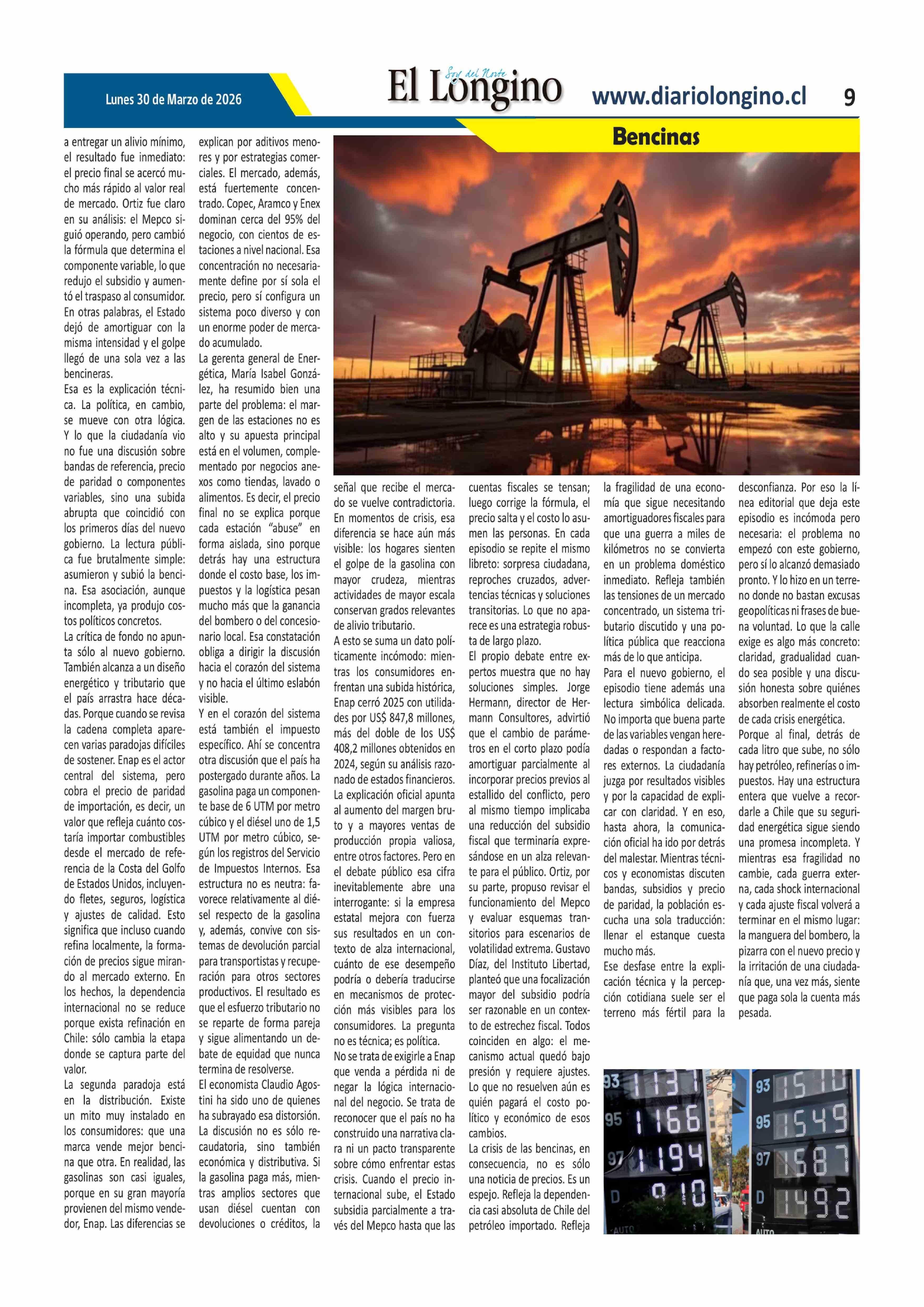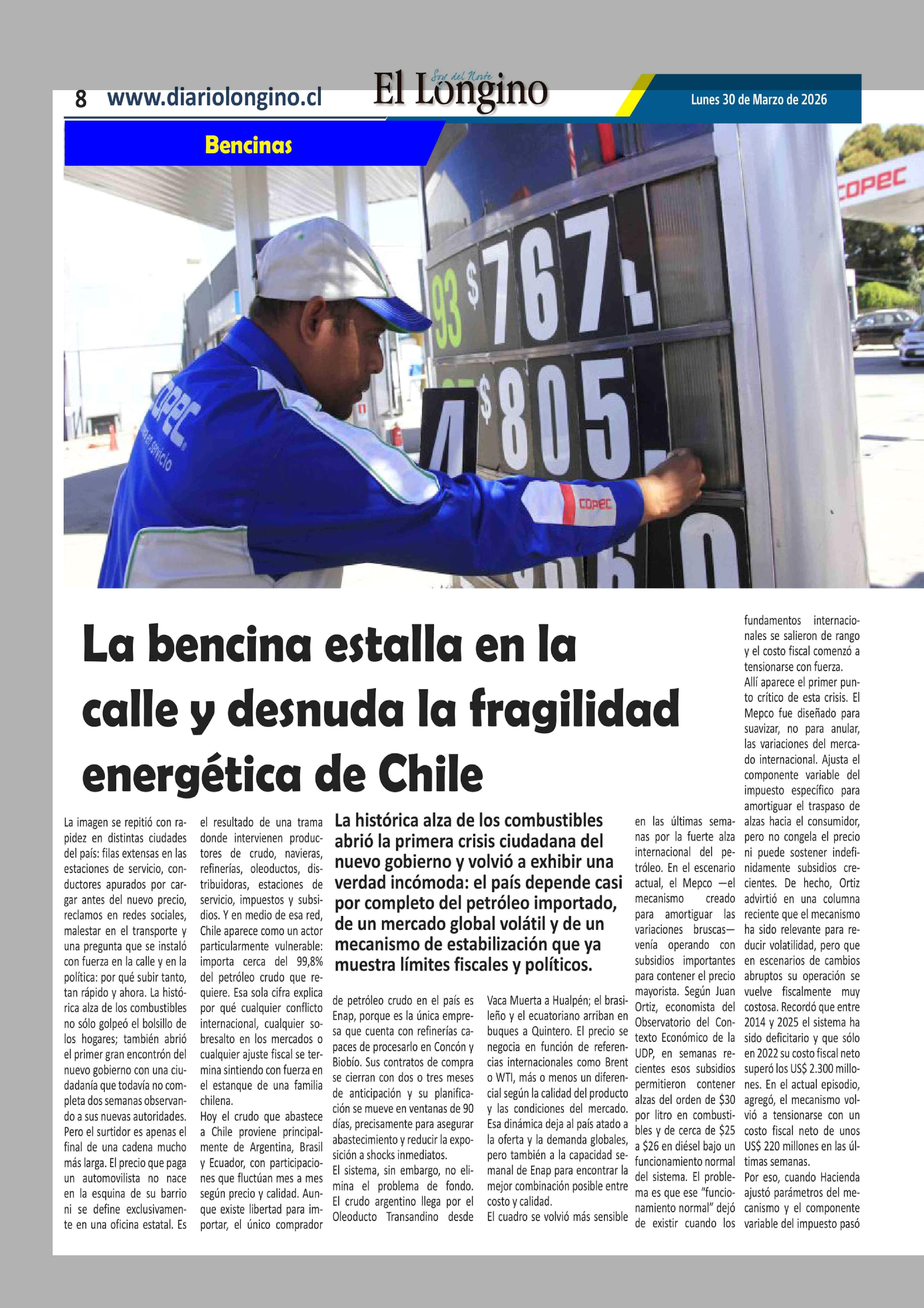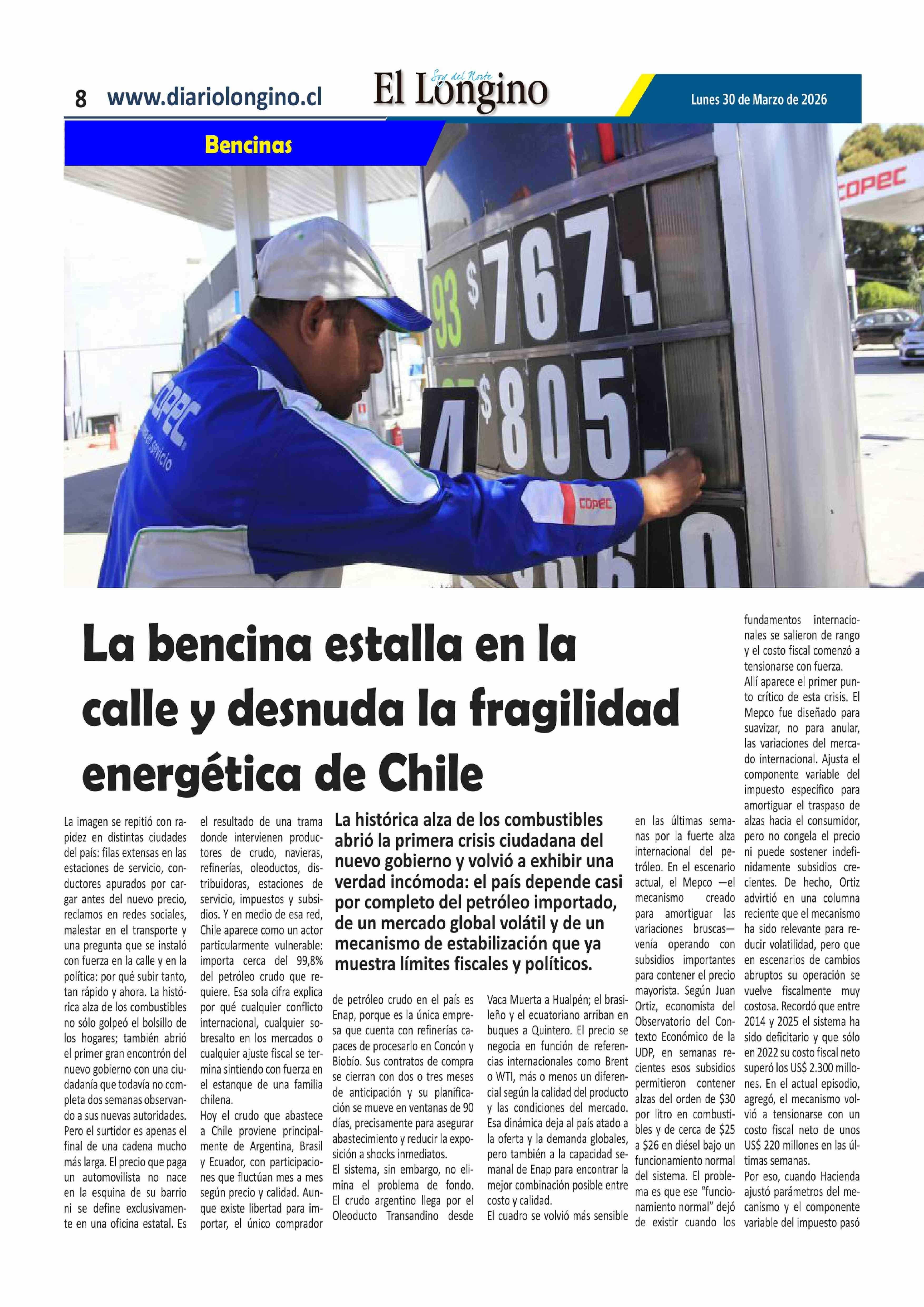 La bencina estalla en la calle y desnuda la fragilidad energética de Chile 30-03-2026 El Longino |