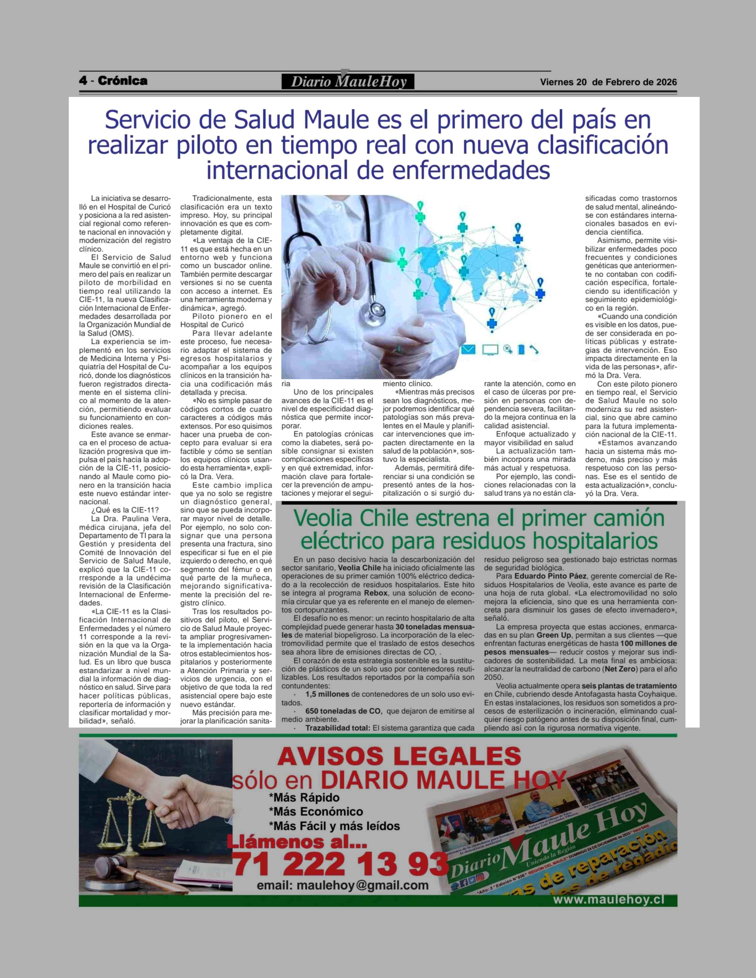 Servicio de Salud Maule es el primero del país en realizar piloto en tiempo real con nueva clasificación internacional de enfermedades 20-02-2026 Maule Hoy |