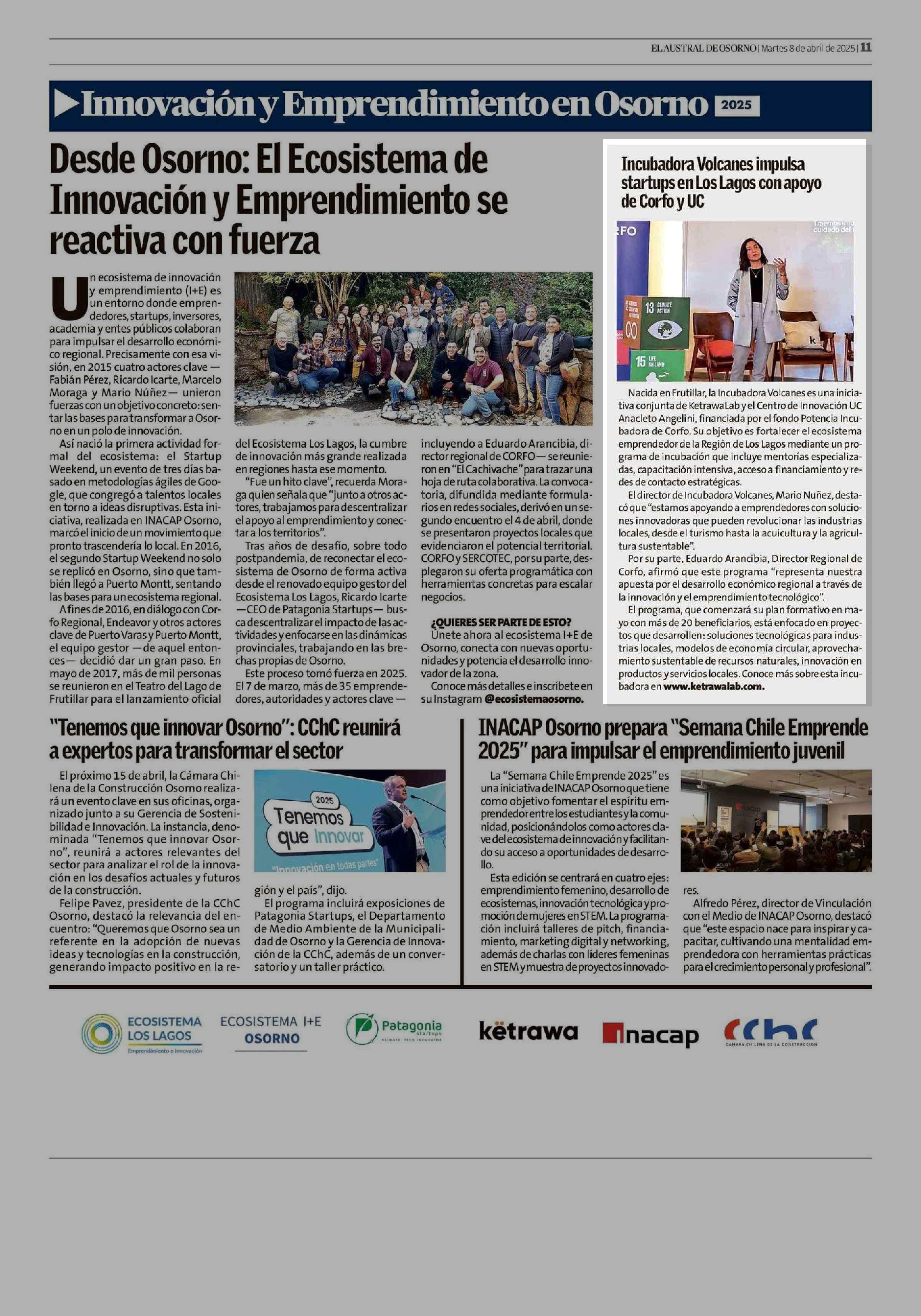 Incubadora Volcanes impulsa 08-04-2025 El Austral de Osorno |