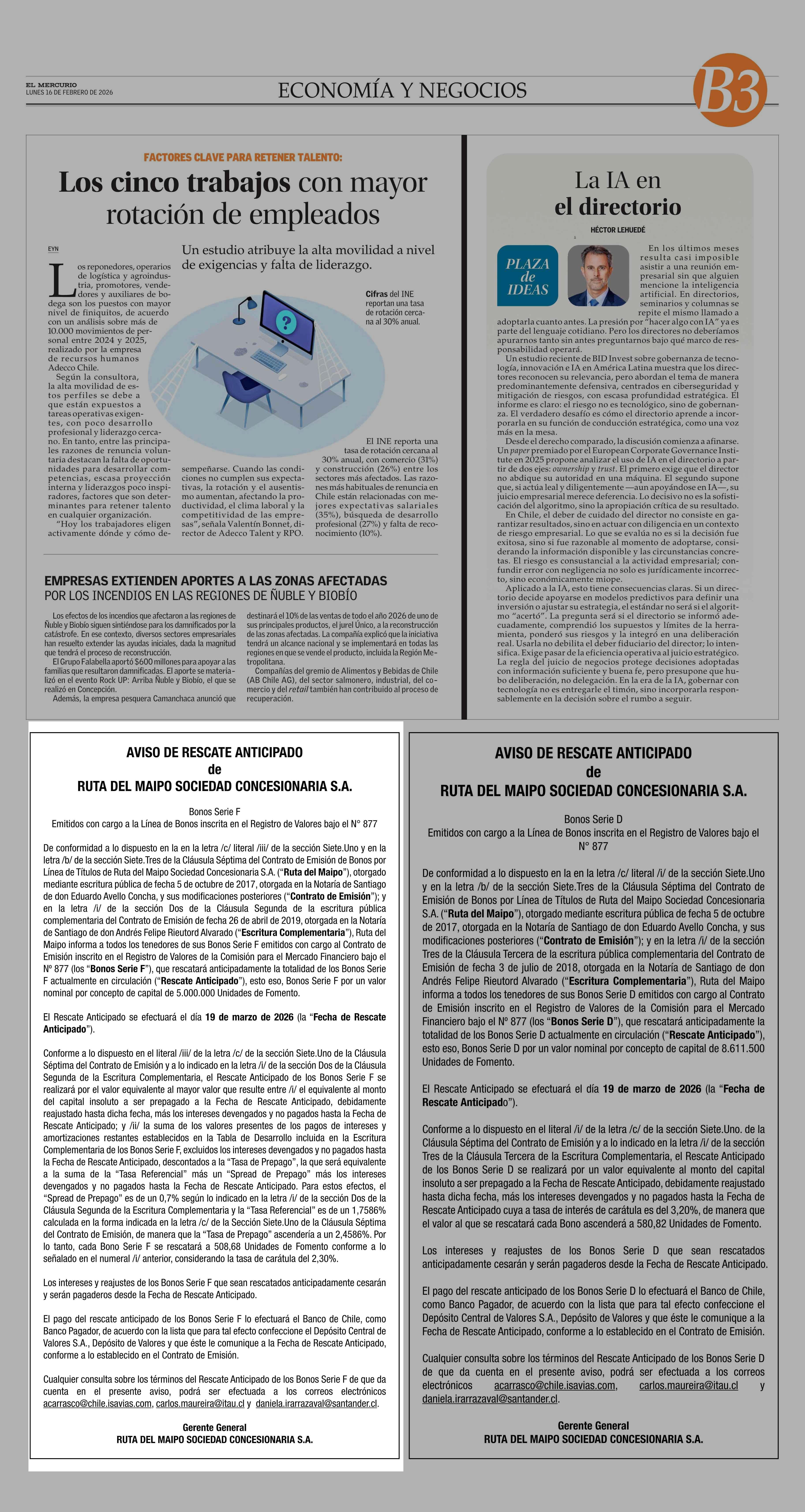 Fecha: 16-02-2026 Sector: Extractos Región: Región Metropolitana de Santiago