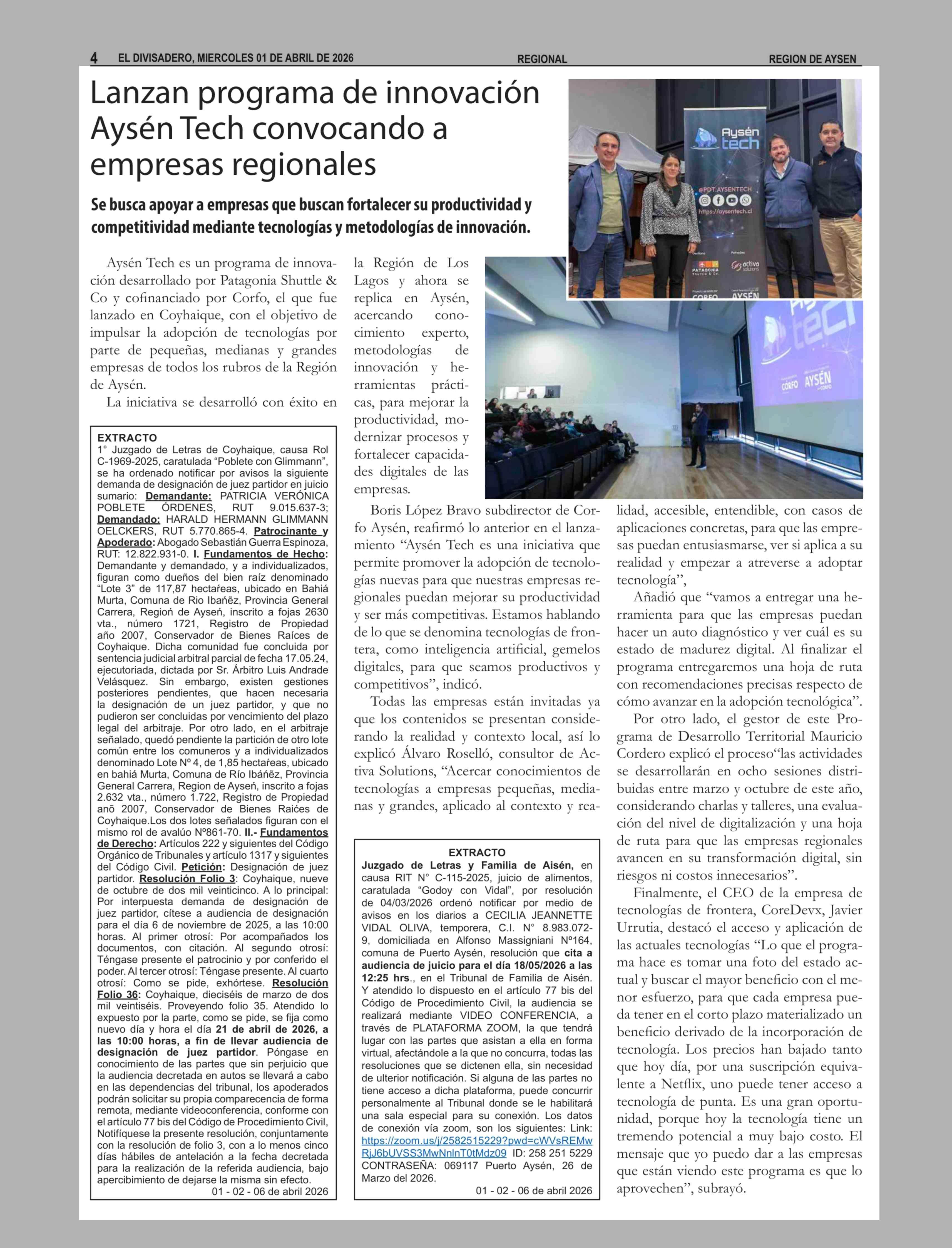 | Fecha: | 01-04-2026 | Sector: | Noticia general | Región: | Región Aysén del General Carlos Ibáñez del Campo |