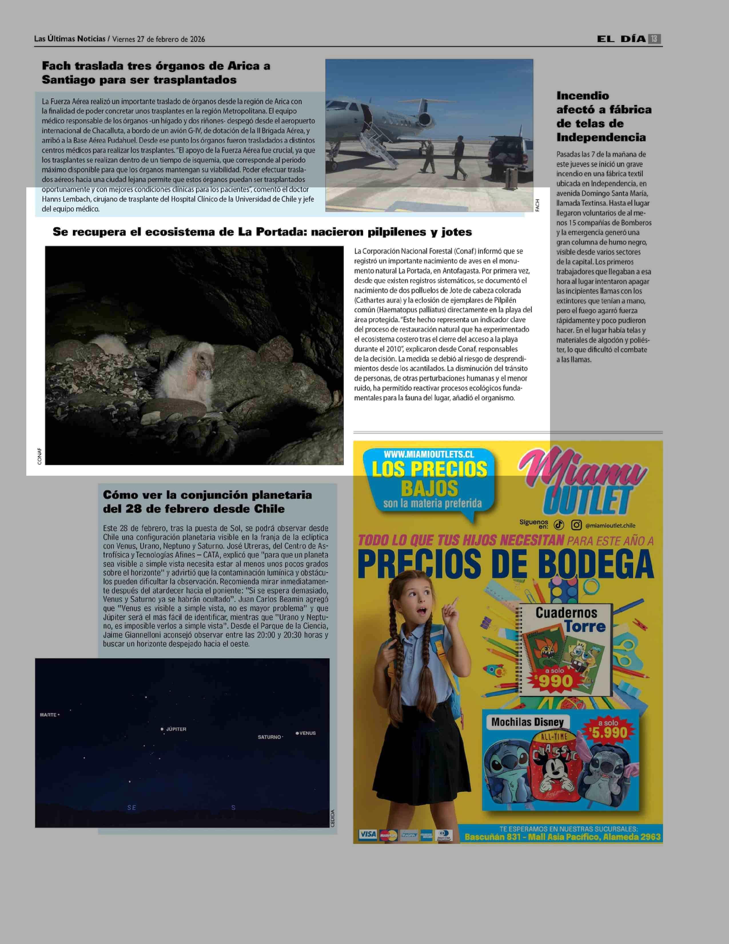 Se recupera el ecosistema de La Portada: nacieron pilpilenes y jotes 27-02-2026 Las Últimas Noticias |