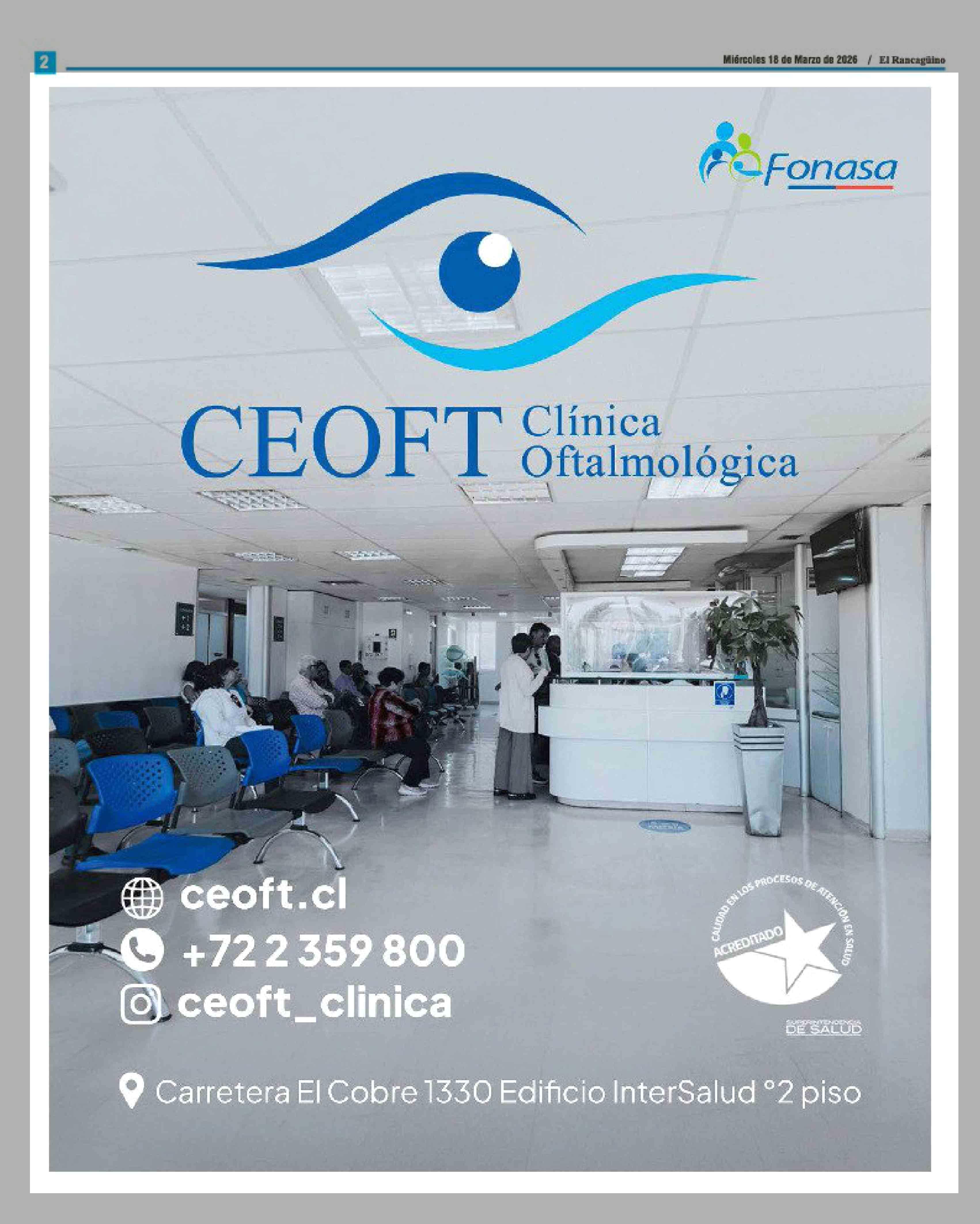 Aviso Salud: CLÍNICA OFTALMOLÓGICA CEOFT 18-03-2026 El Rancagüino |