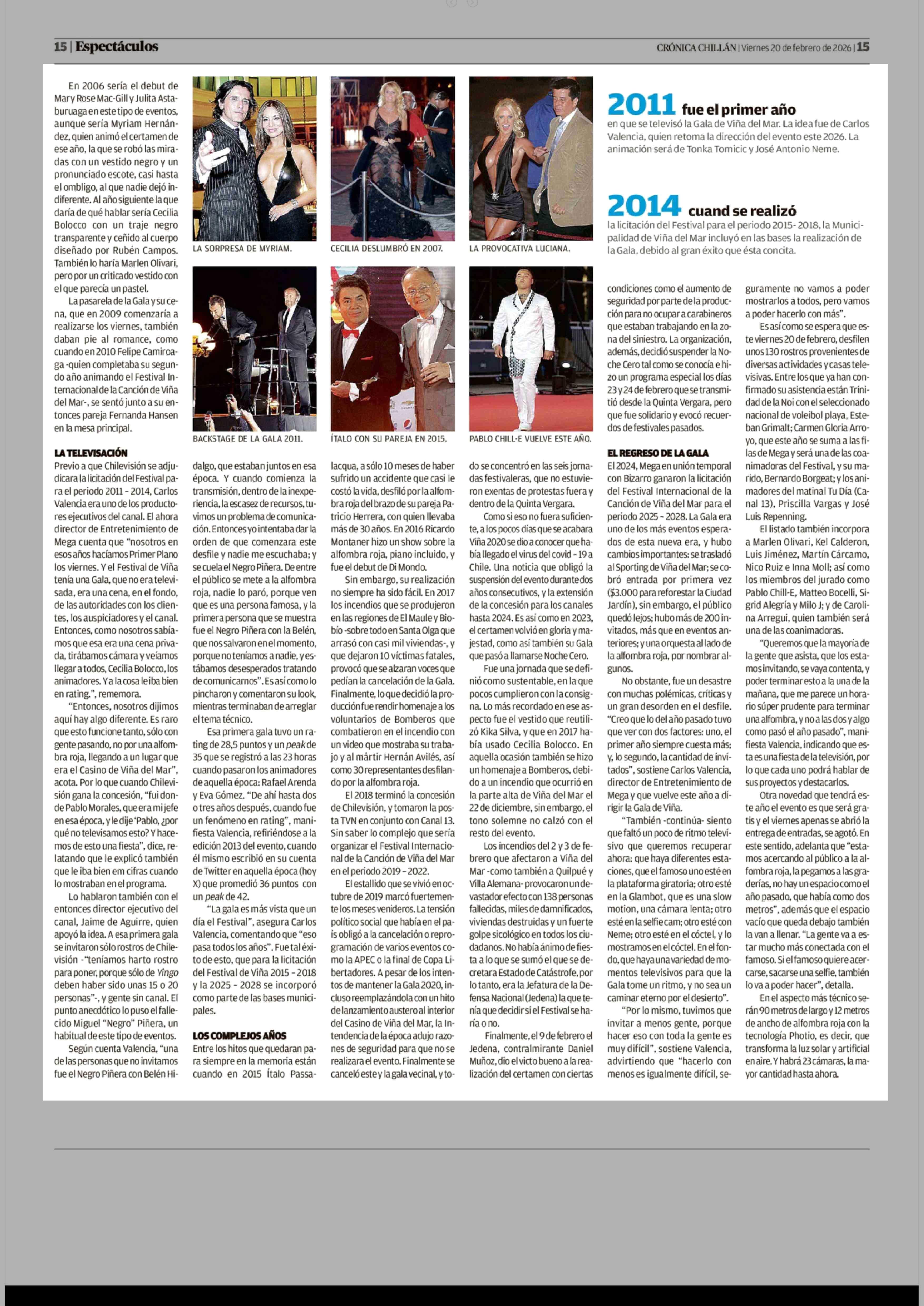 La historia de la Gala de Viña: un evento que tiene su propio protagonismo festivalero 20-02-2026 Crónica de Chillán |