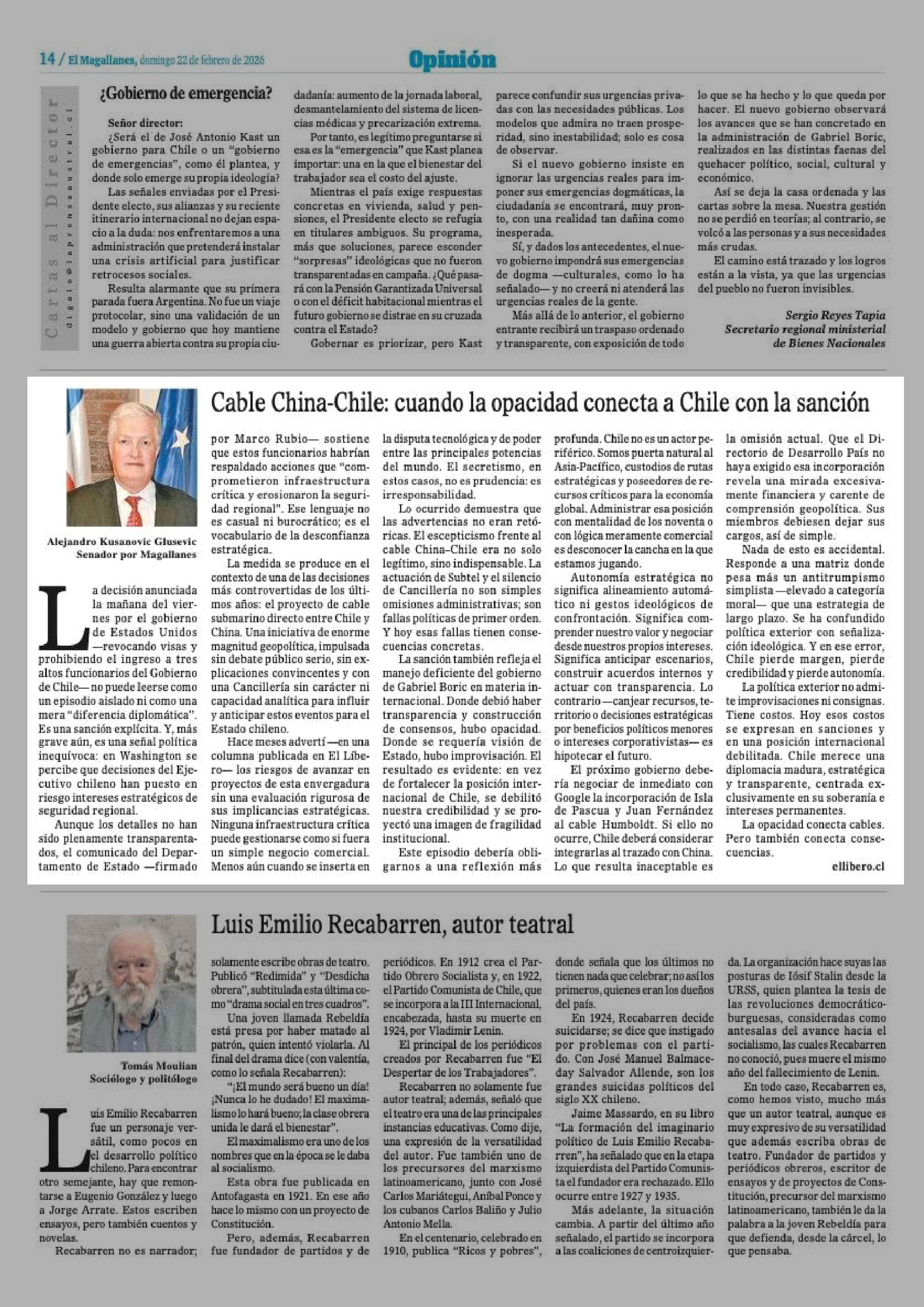 | Fecha: | 22-02-2026 | Sector: | Columnas de Opinión | Región: | Región de Magallanes y de la Antártica Chilena |