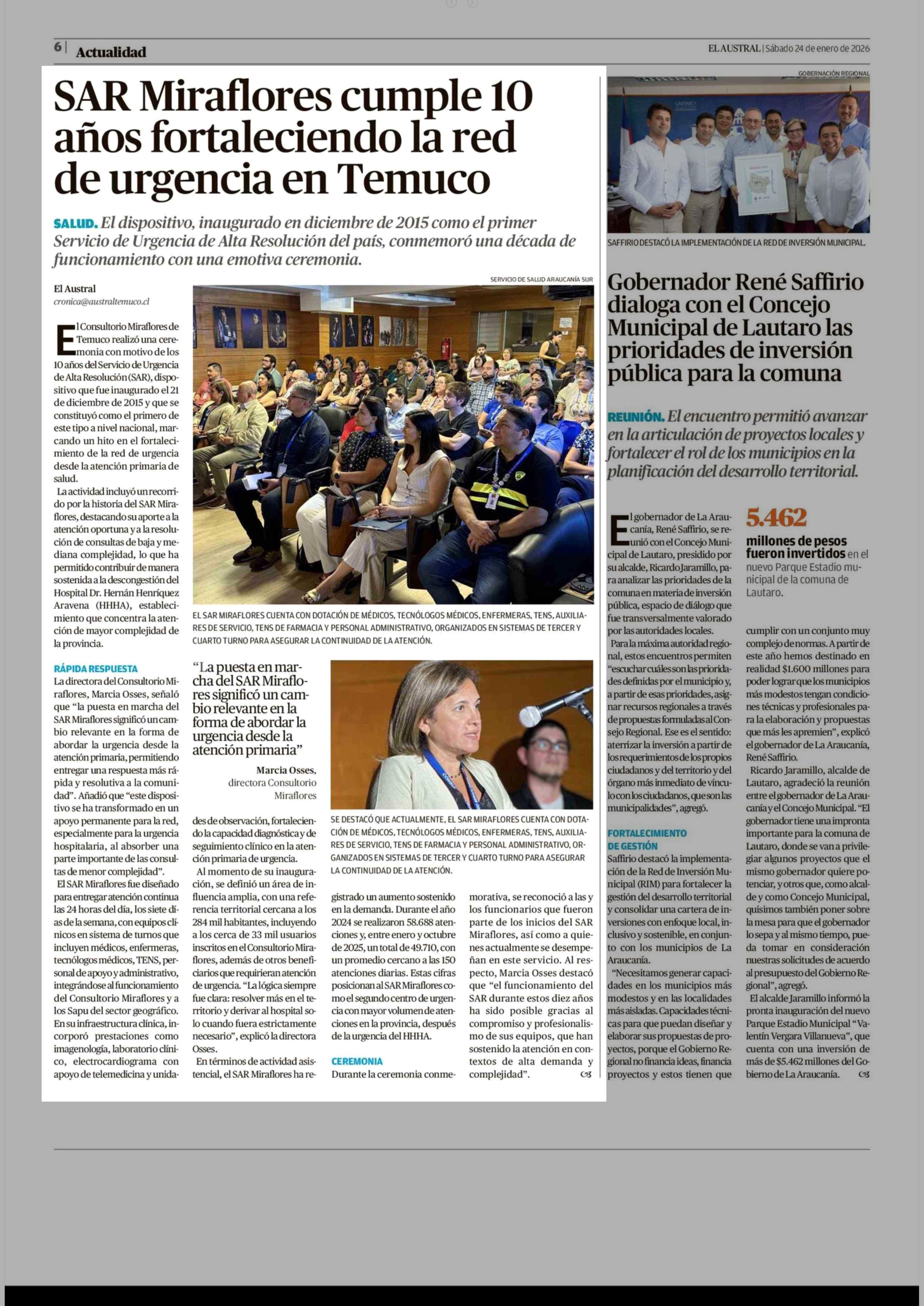 Título: SAR Miraflores cumple 10 años fortaleciendo la red de urgencia en Temuco