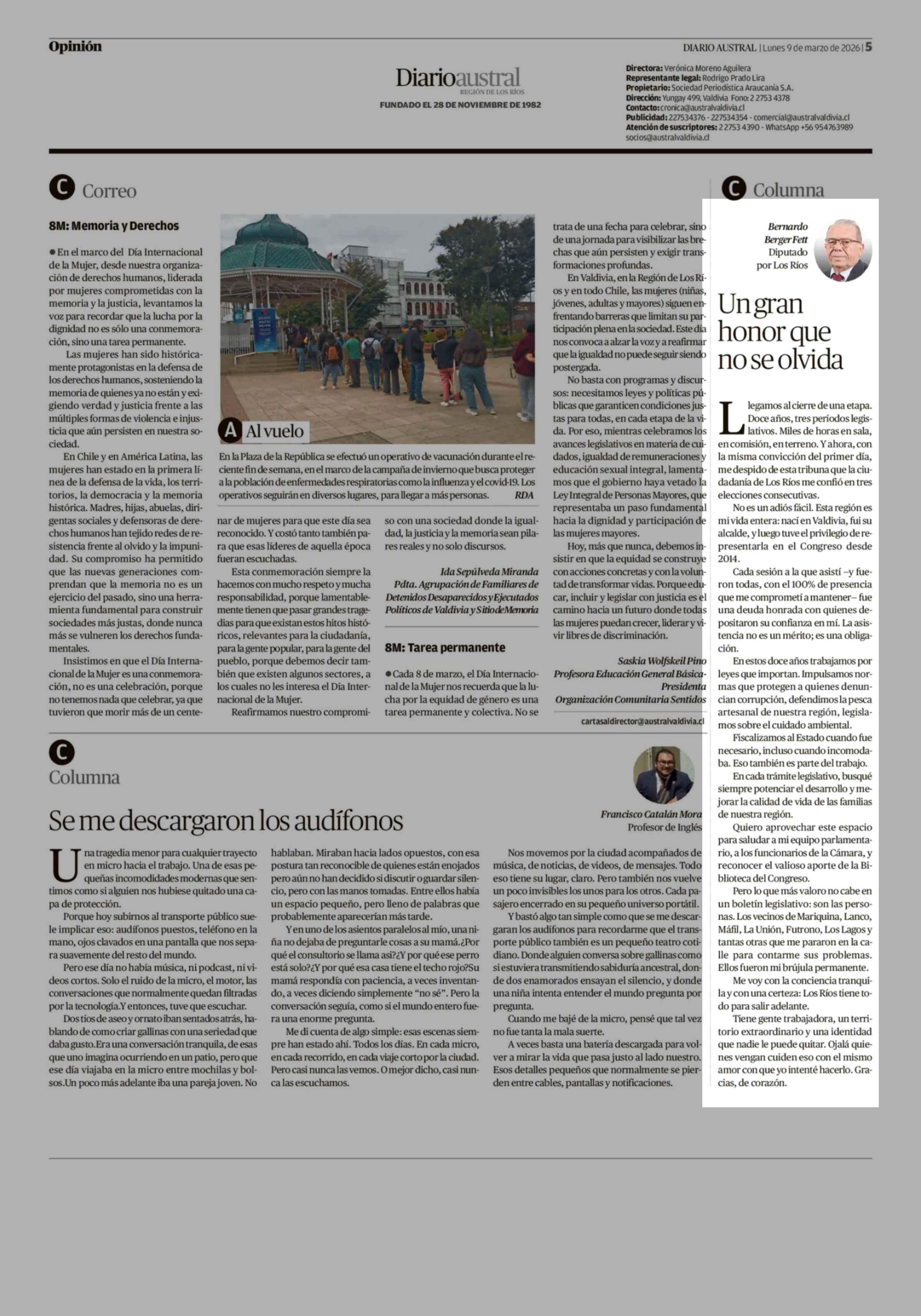 Fecha: 09-03-2026 Sector: Columnas de Opinión Región: Región de Los Ríos