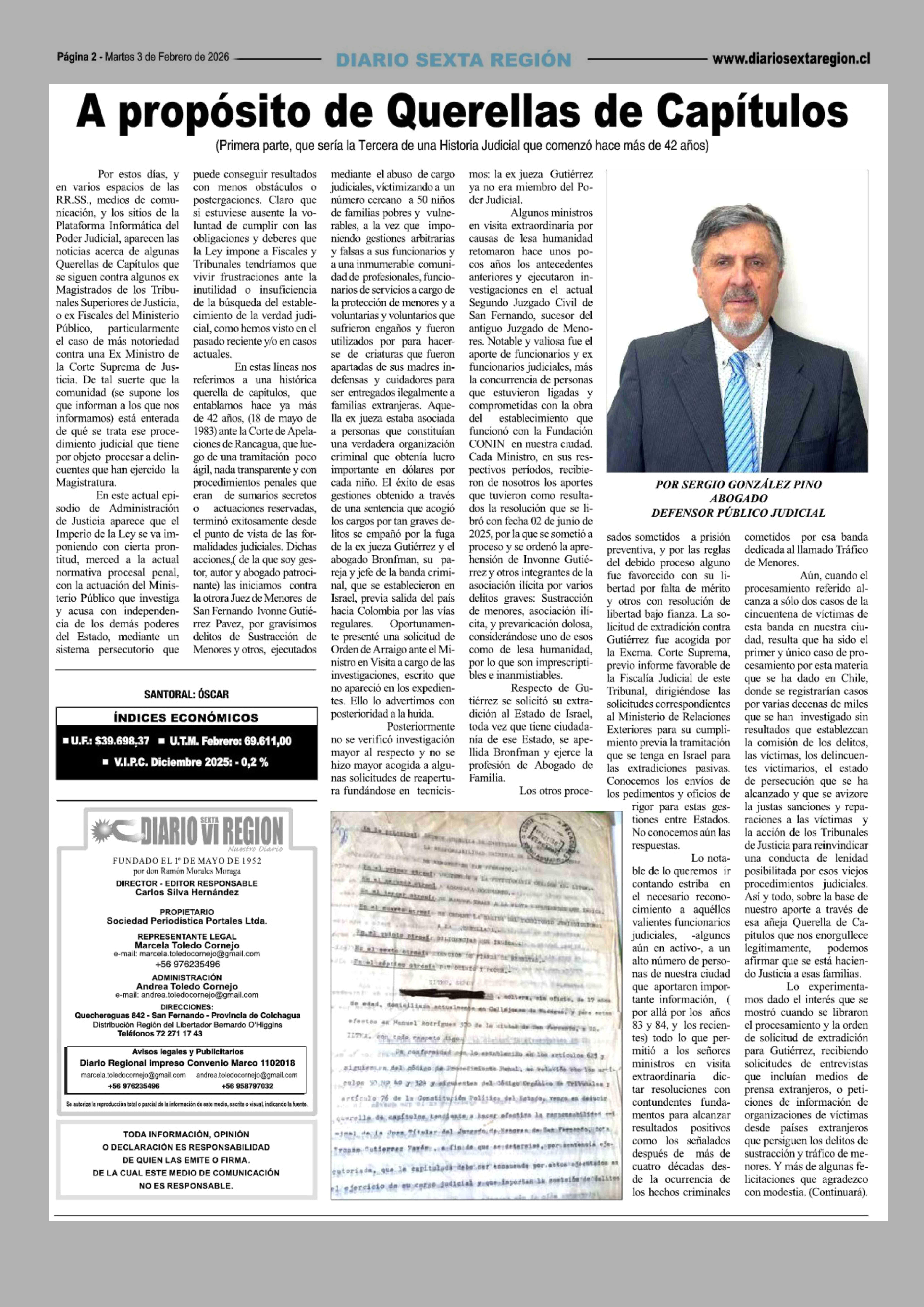 Fecha: 03-02-2026 Sector: Columnas de Opinión Región: Región del Libertador General Bernardo O'Higgins