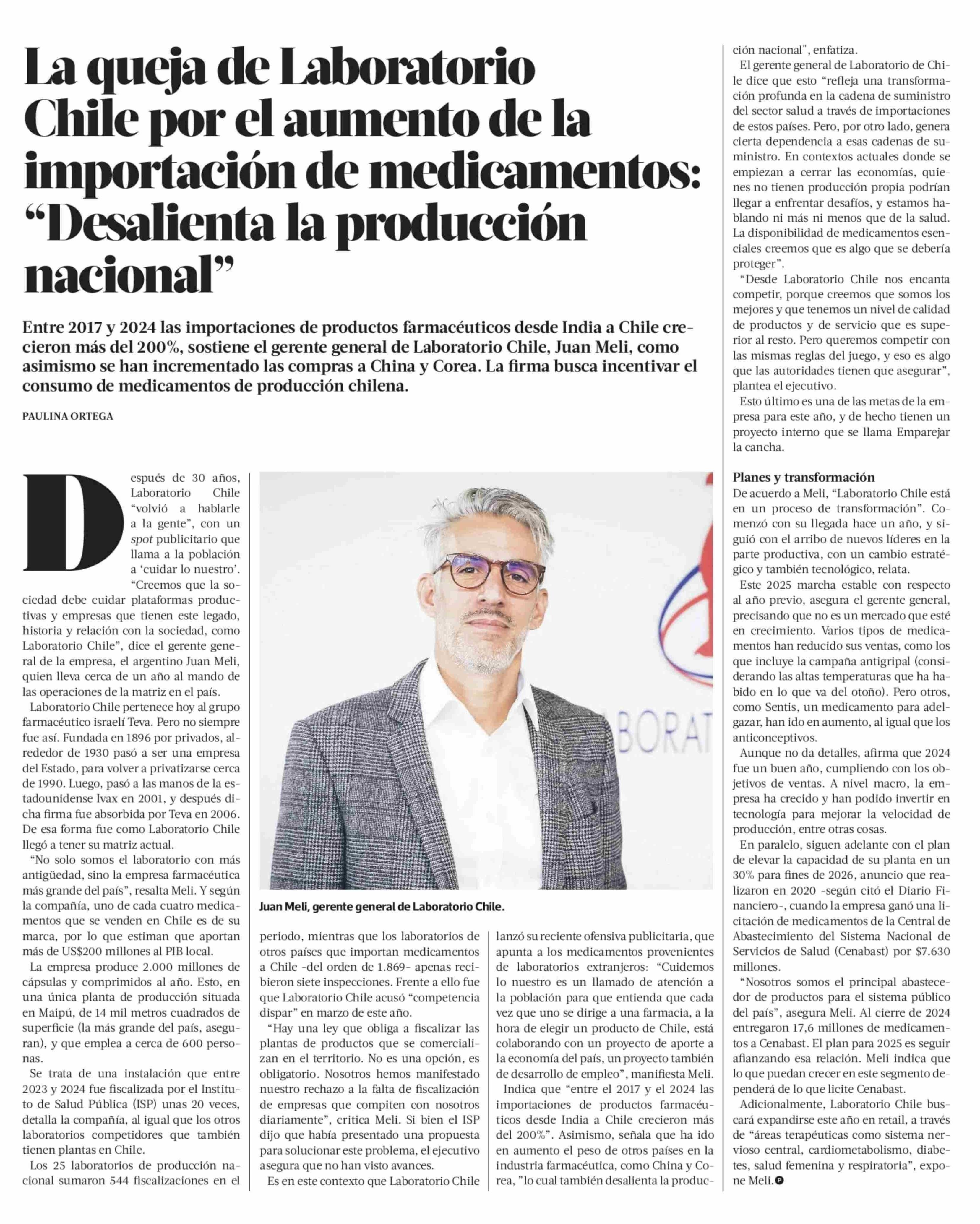 La queja de Laboratorio Chile por el aumento de la importación de medicamentos: “Desalienta la producción nacional” 31-05-2025 La Tercera |