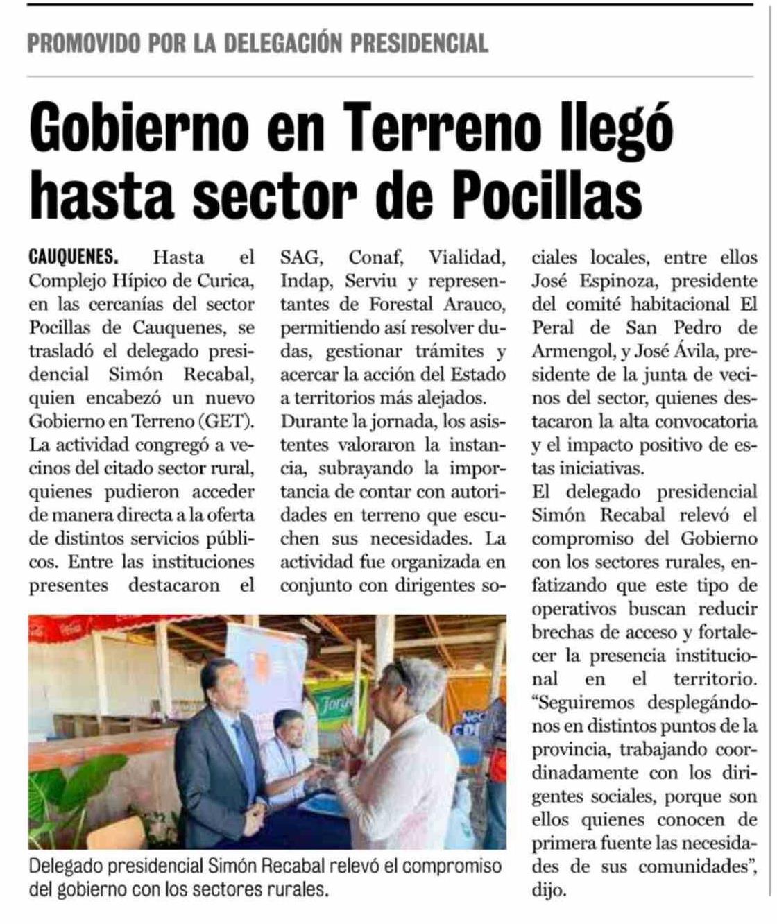 Gobierno en Terreno llegó hasta sector de Pocillas 12-04-2026 La Prensa de Curicó |