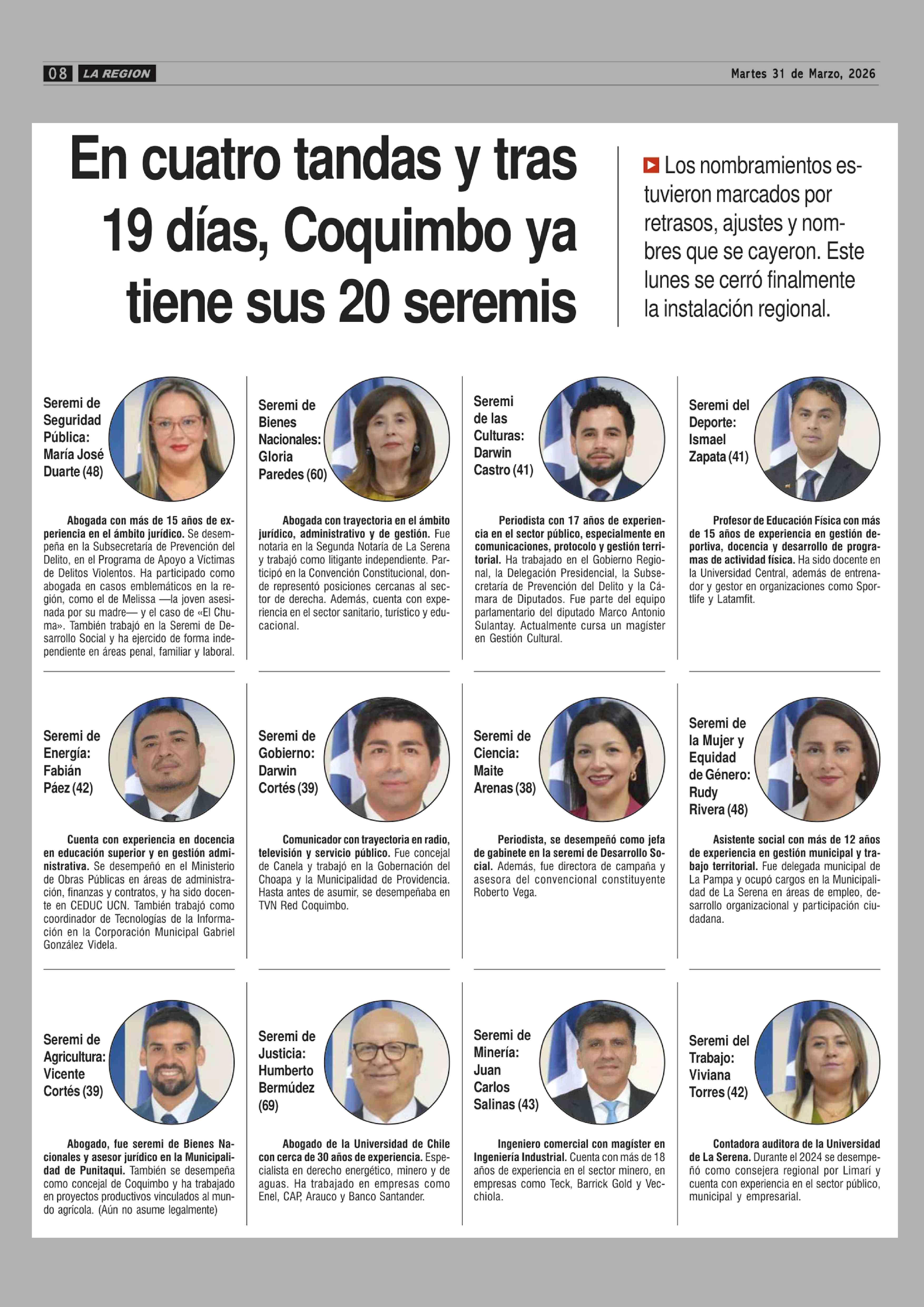 Título: En cuatro tandas y tras 19 días, Coquimbo ya tiene sus 20 seremis