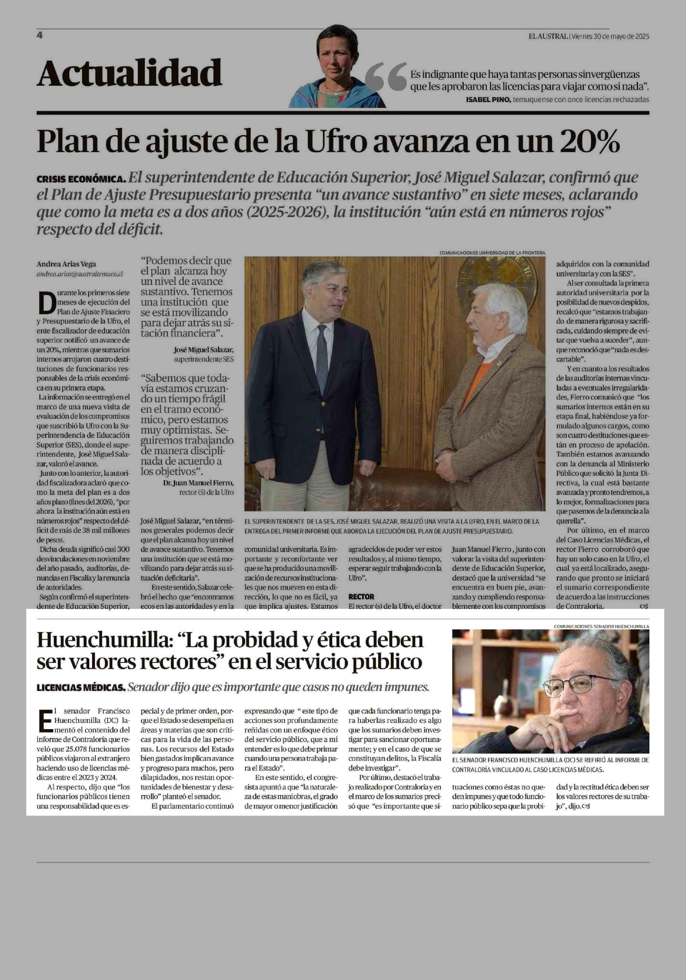 | Fecha: | 30-05-2025 | Sector: | Noticia general | Región: | Región de la Araucanía |