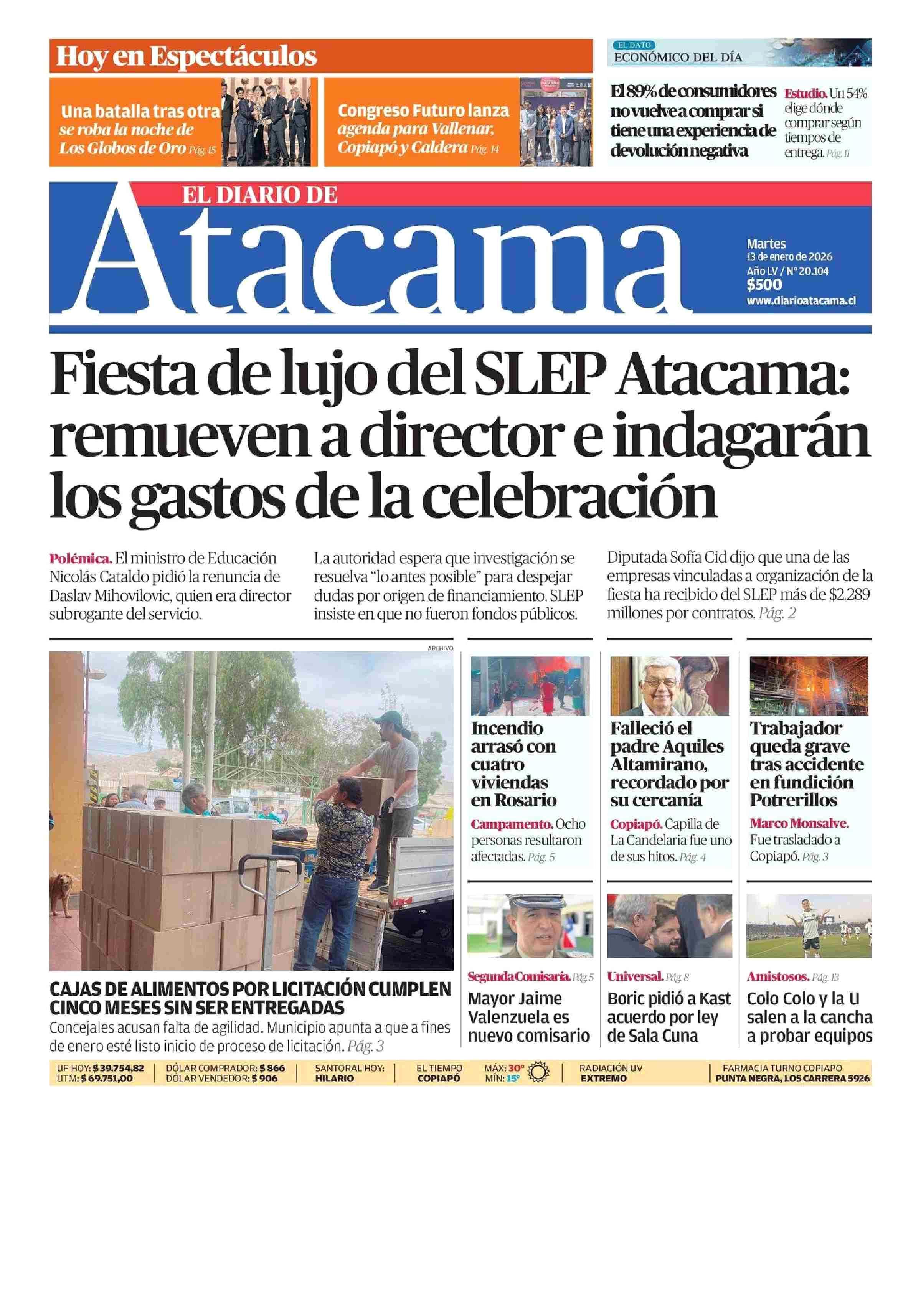 PORTADA EL DIARIO DE ATACAMA CHILE 13-01-2026 El Diario de Atacama |
