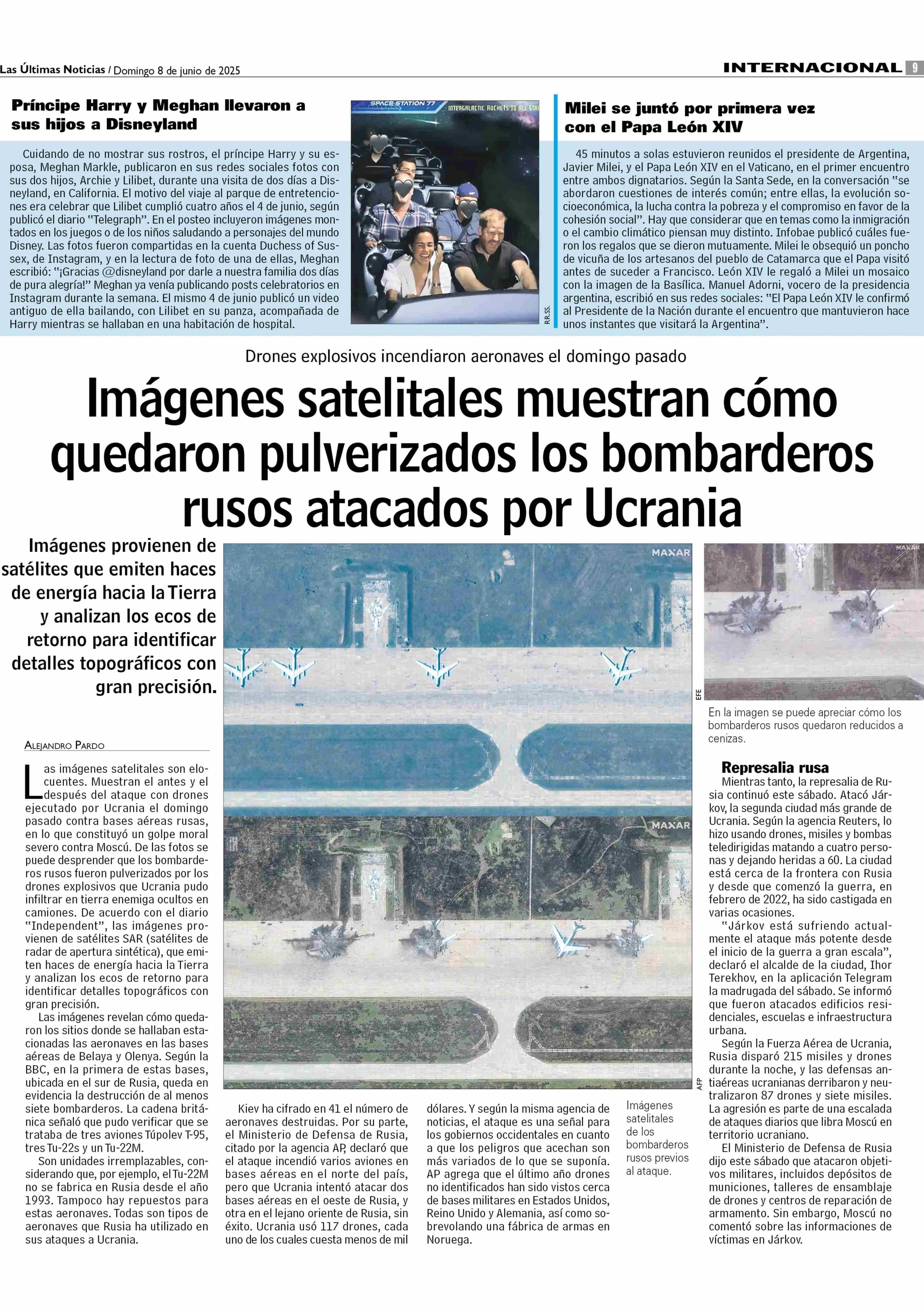 | Título: | Imágenes satelitales muestran cómo quedaron pulverizados los bombarderos rusos atacados por Ucrania |