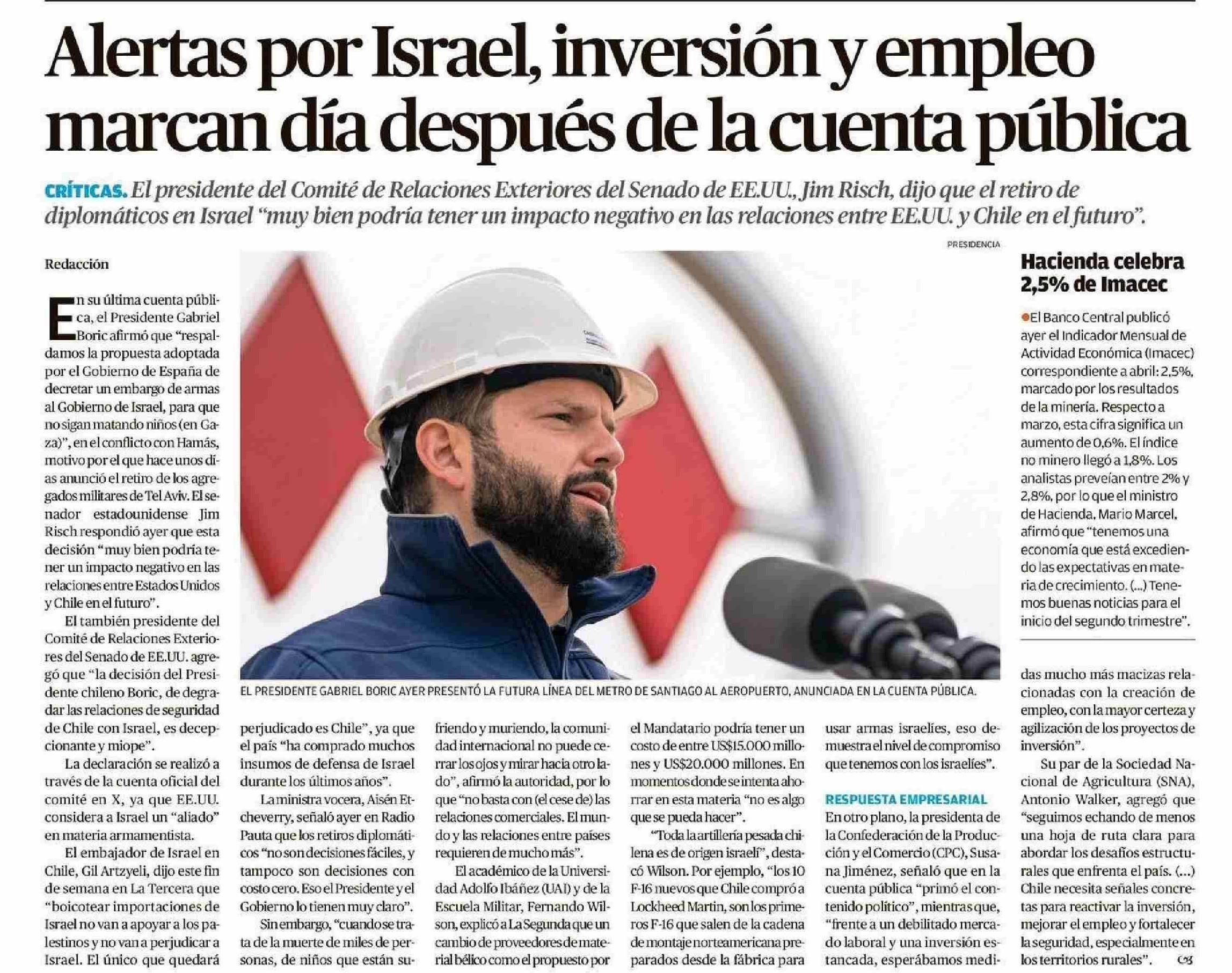 Título: Alertas por Israel, inversión y empleo marcan día después de la cuenta pública