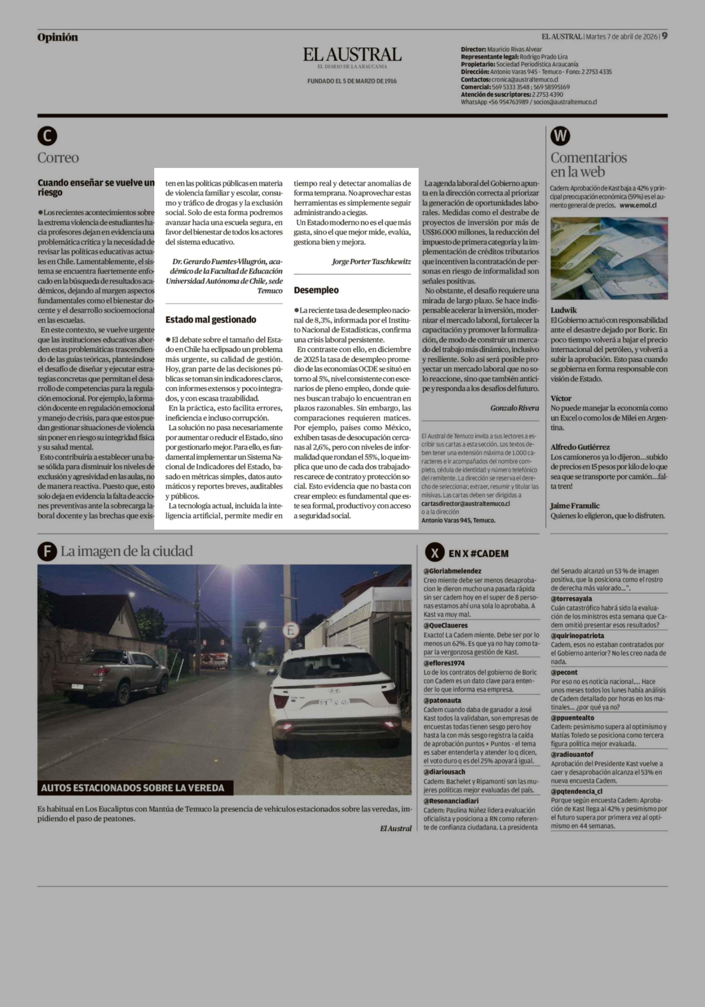 Fuente: El Austral de la Araucanía (El Austral de la Araucanía) Página(s): 9