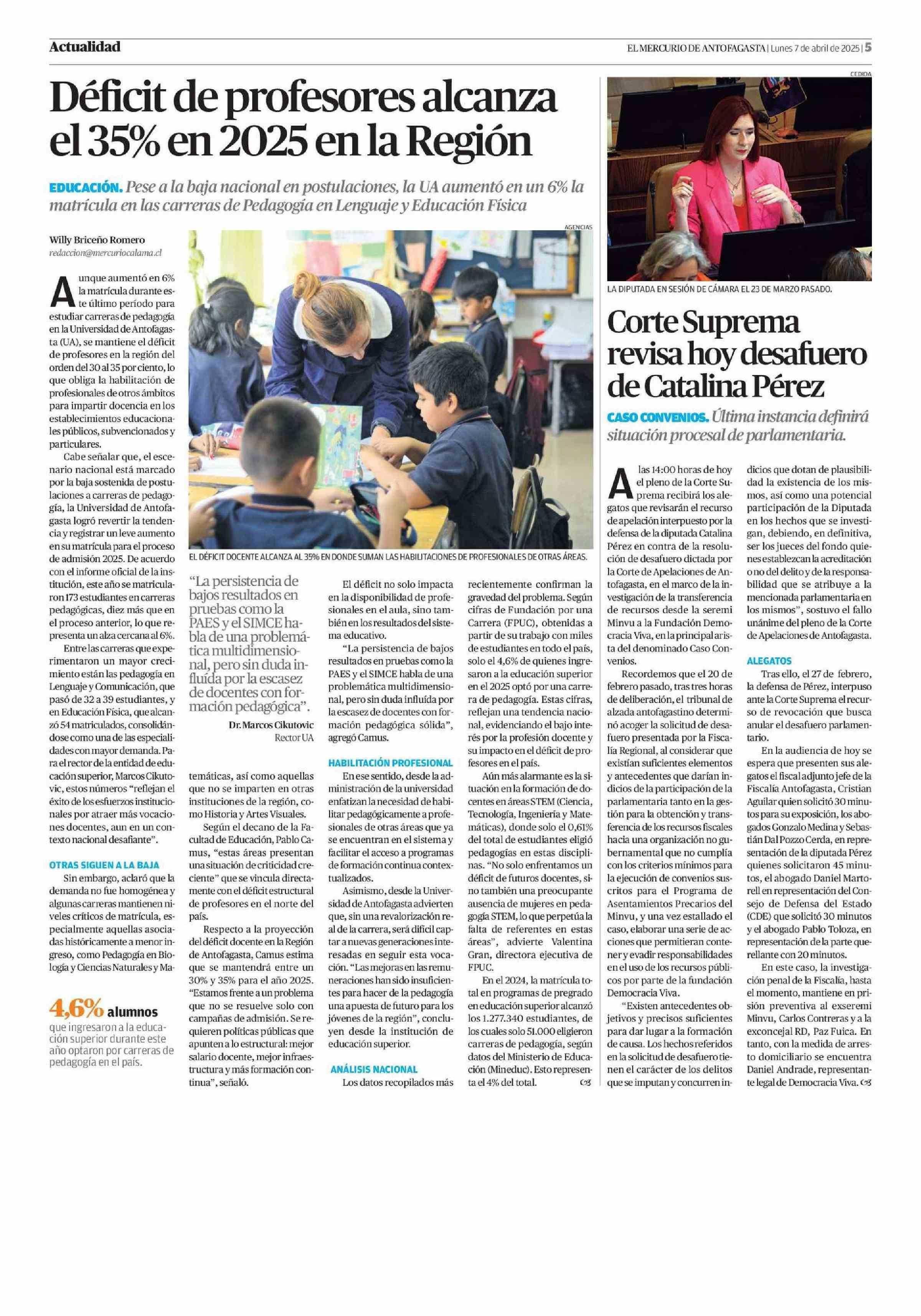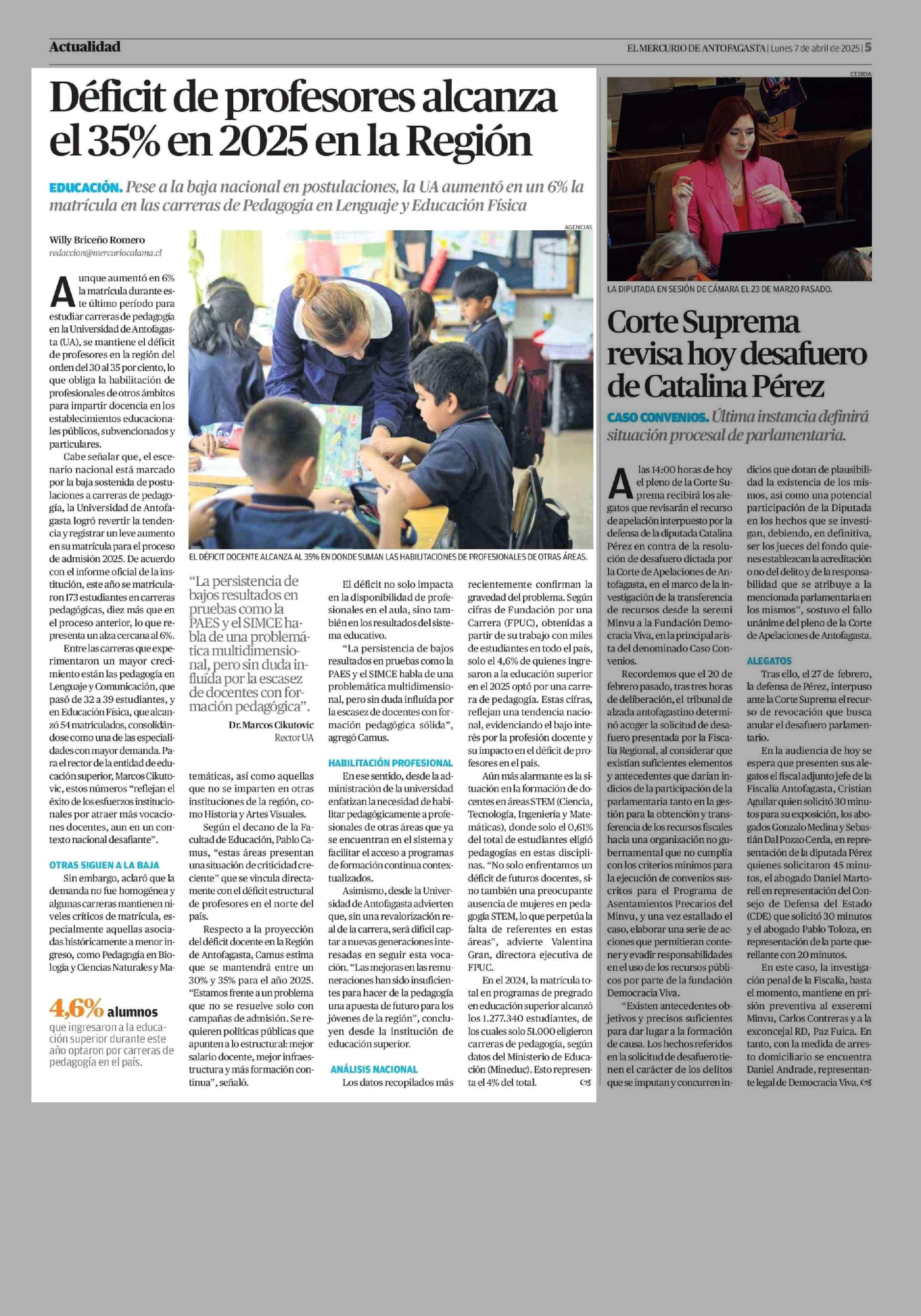 Déficit de profesores alcanza el 35% en 2025 en la Región 07-04-2025 El Mercurio de Antofagasta |