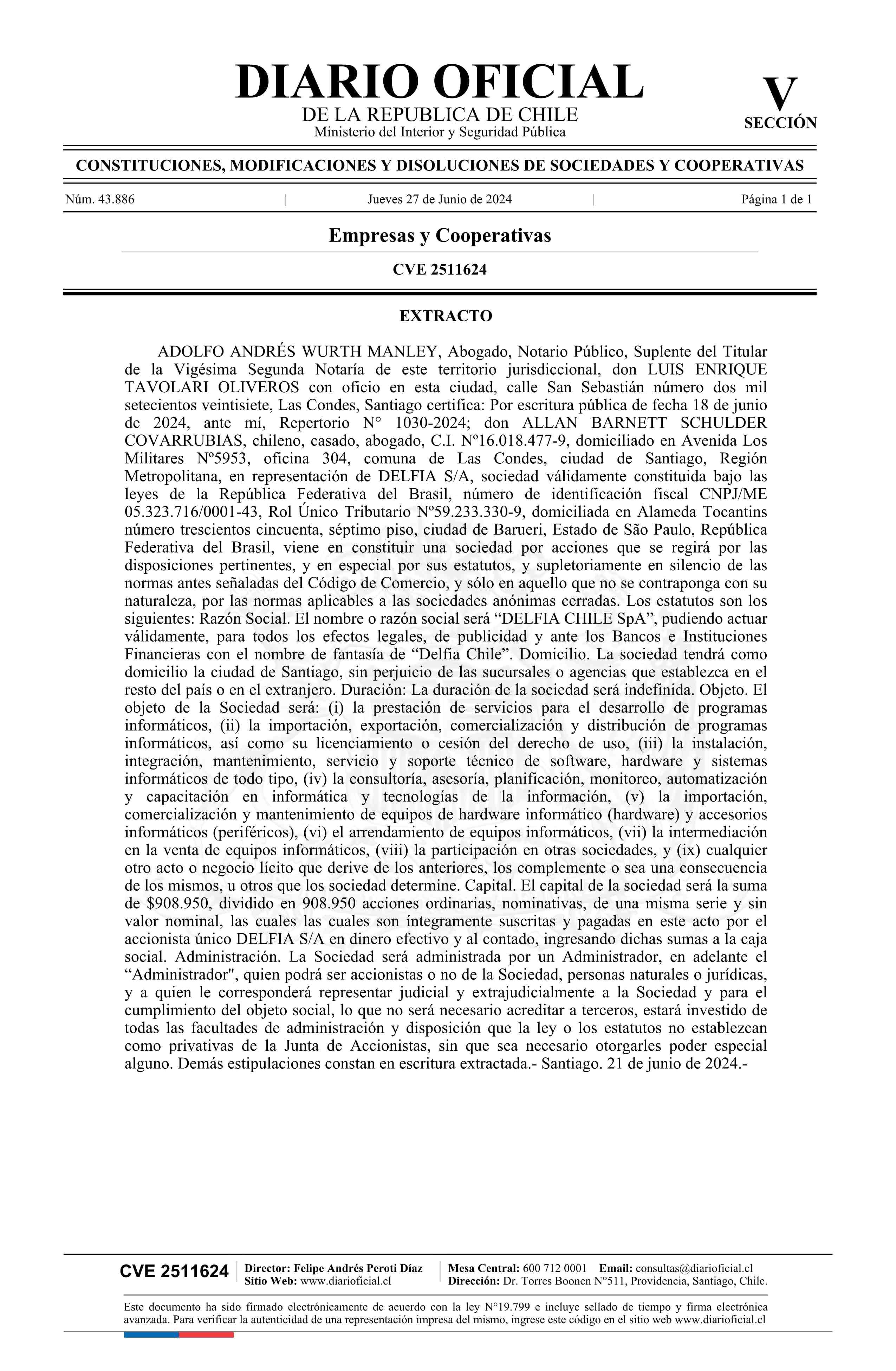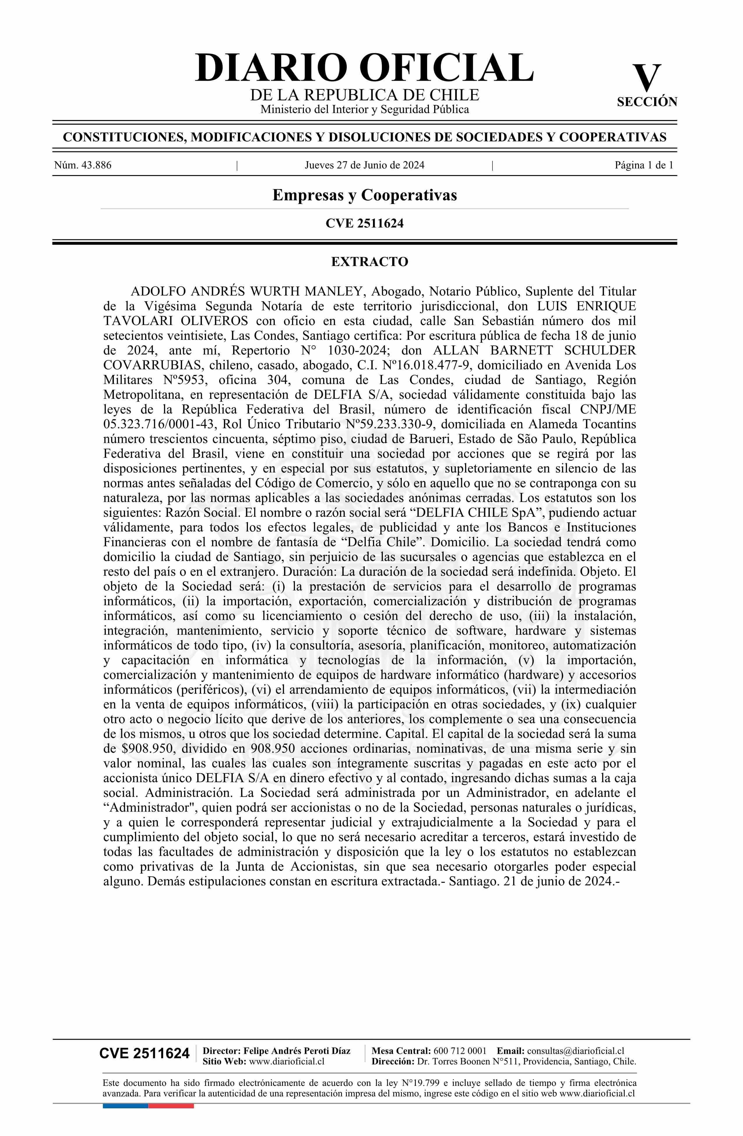 DELFIA CHILE SpA 27-06-2024 Diario Oficial Edición Electrónica |