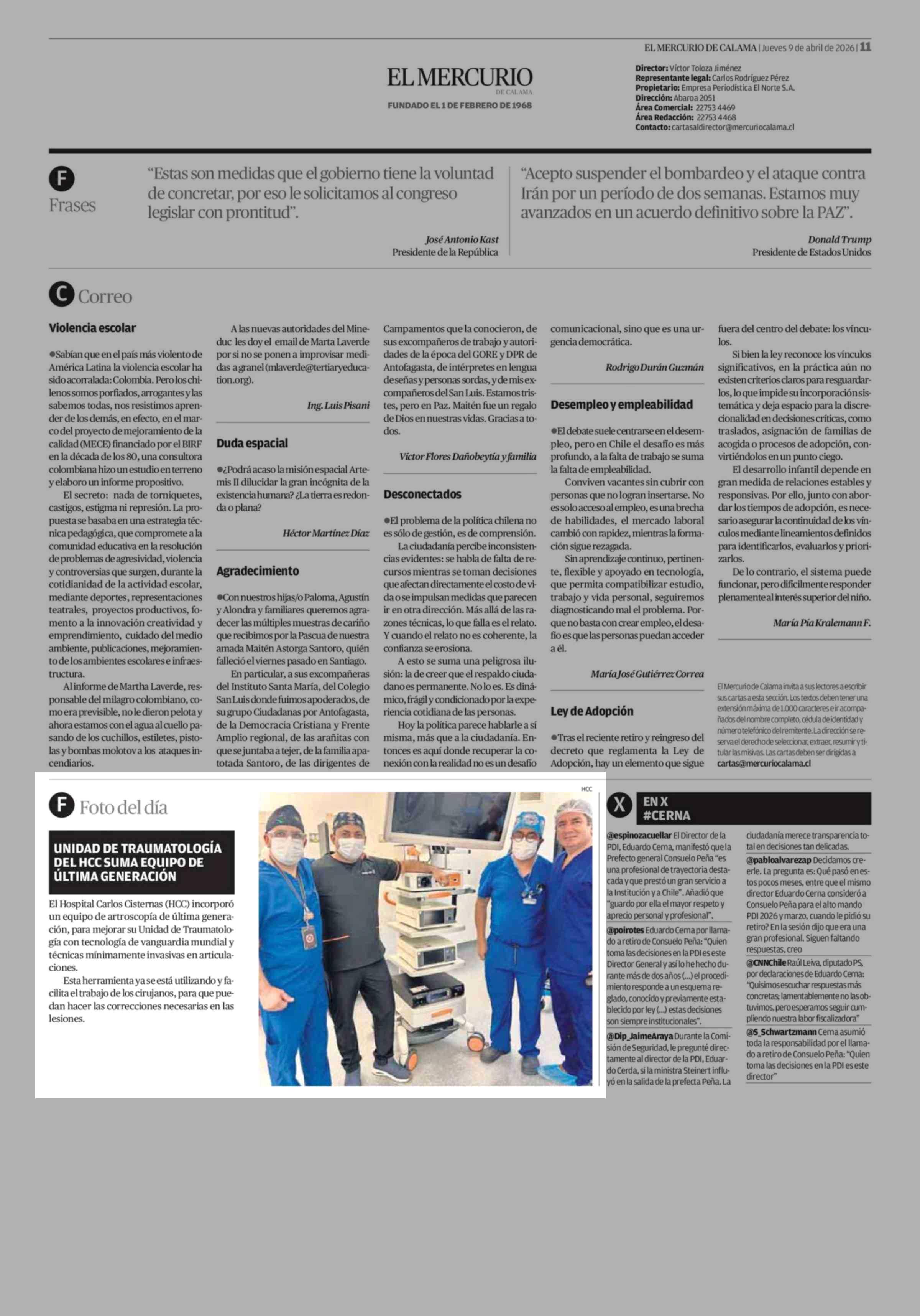 Foto del día 09-04-2026 El Mercurio de Calama |
