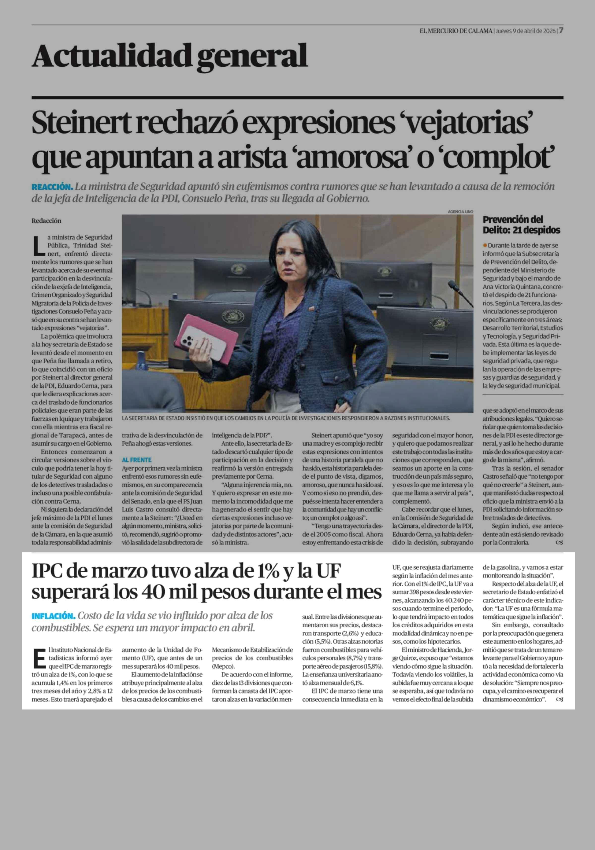 IPC de marzo tuvo alza de 1% y la UF superará los 40 mil pesos durante el mes 09-04-2026 El Mercurio de Calama |