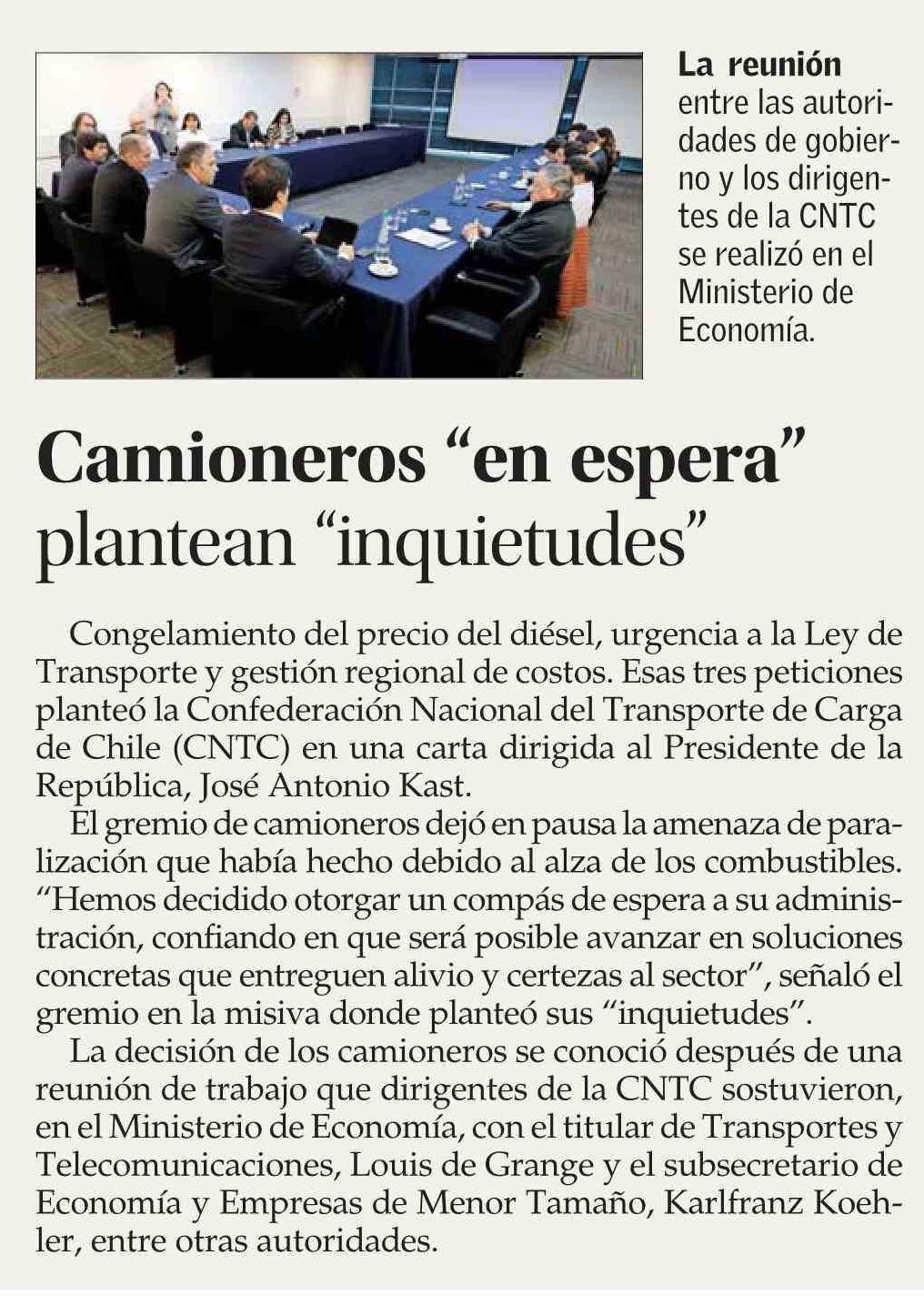 Título: Camioneros “en espera” plantean “inquietudes”