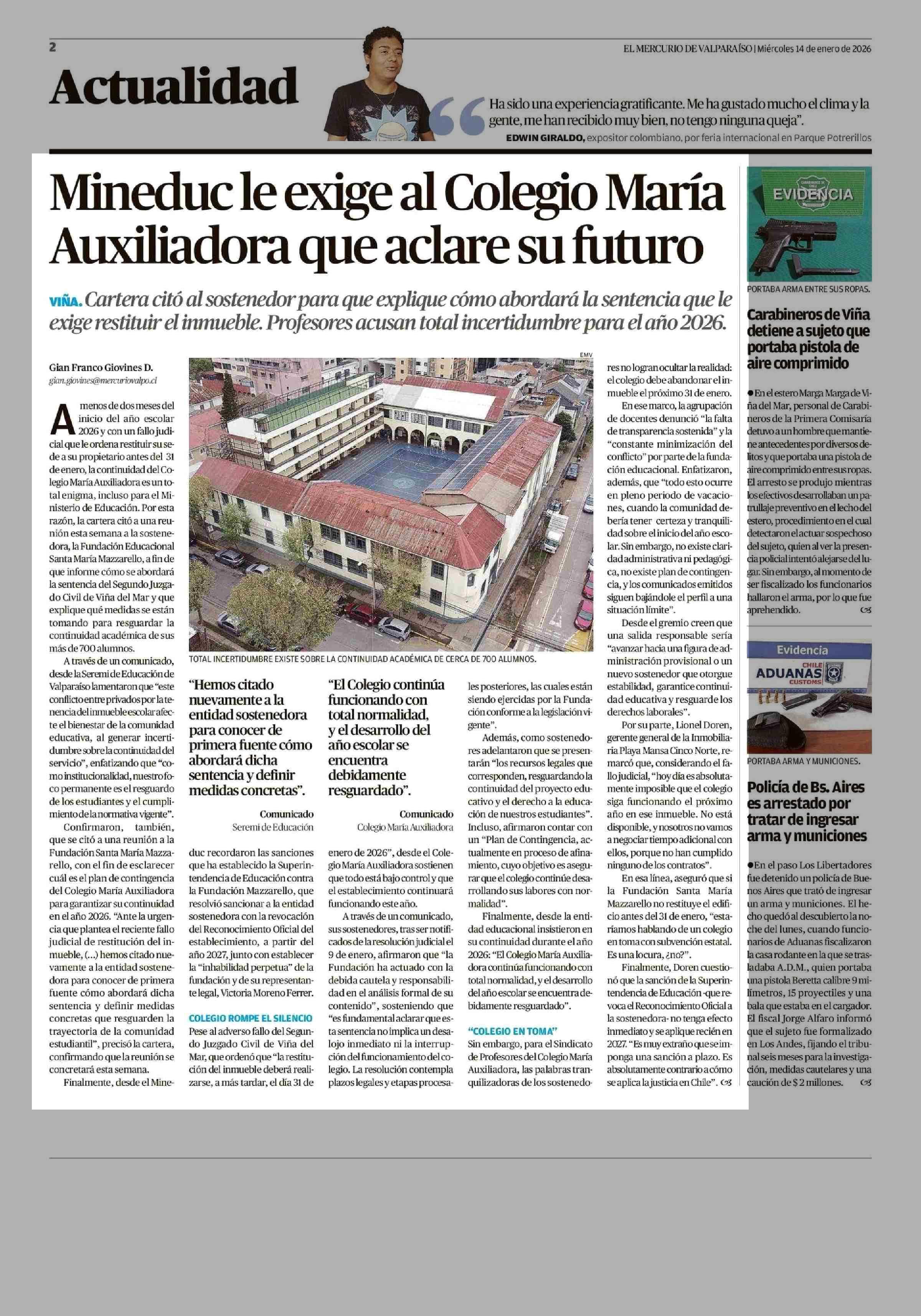 14-01-2026 El Mercurio de Valparaíso