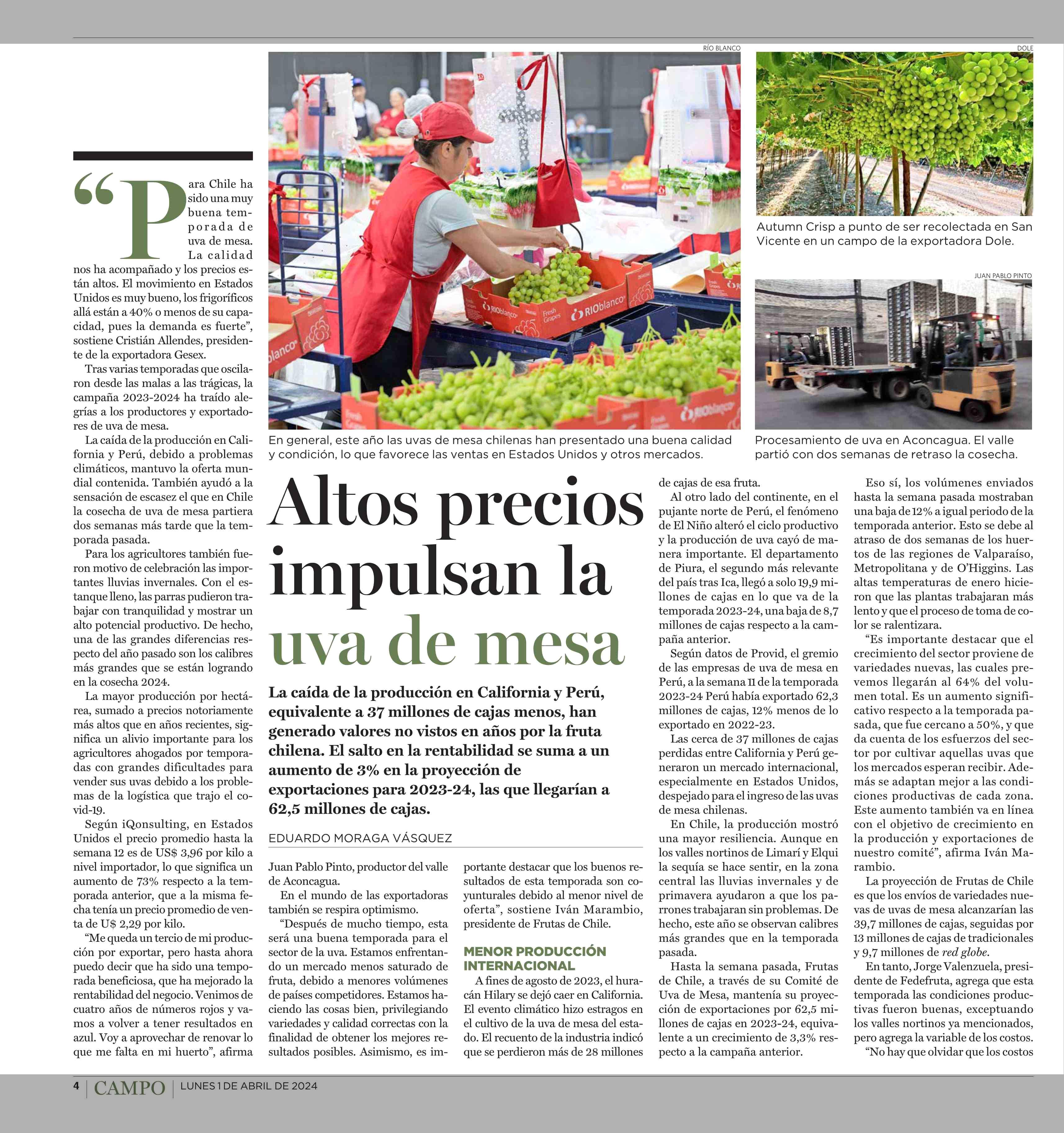 Altos precios impulsan la uva de mesa 01-04-2024 El Mercurio |