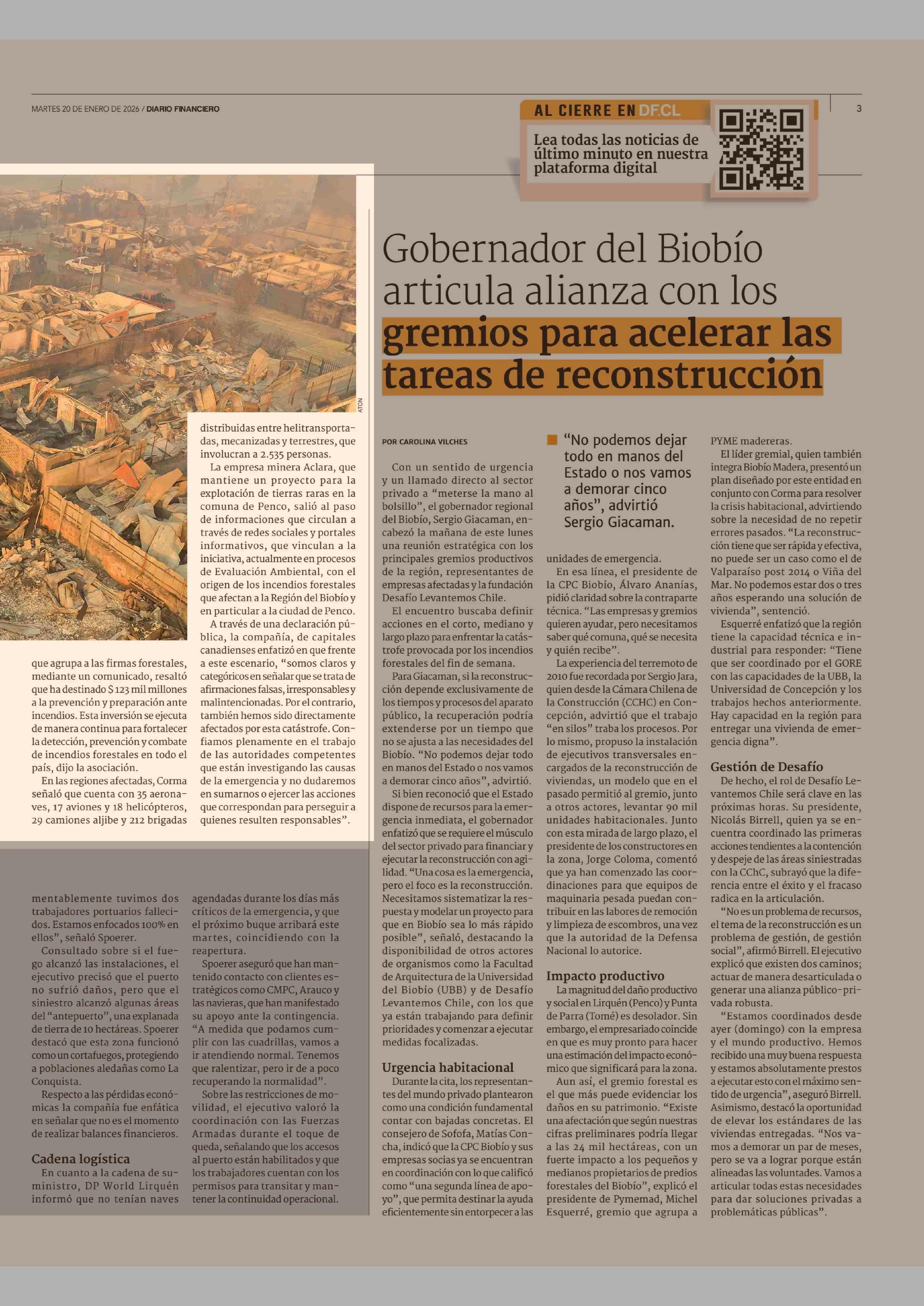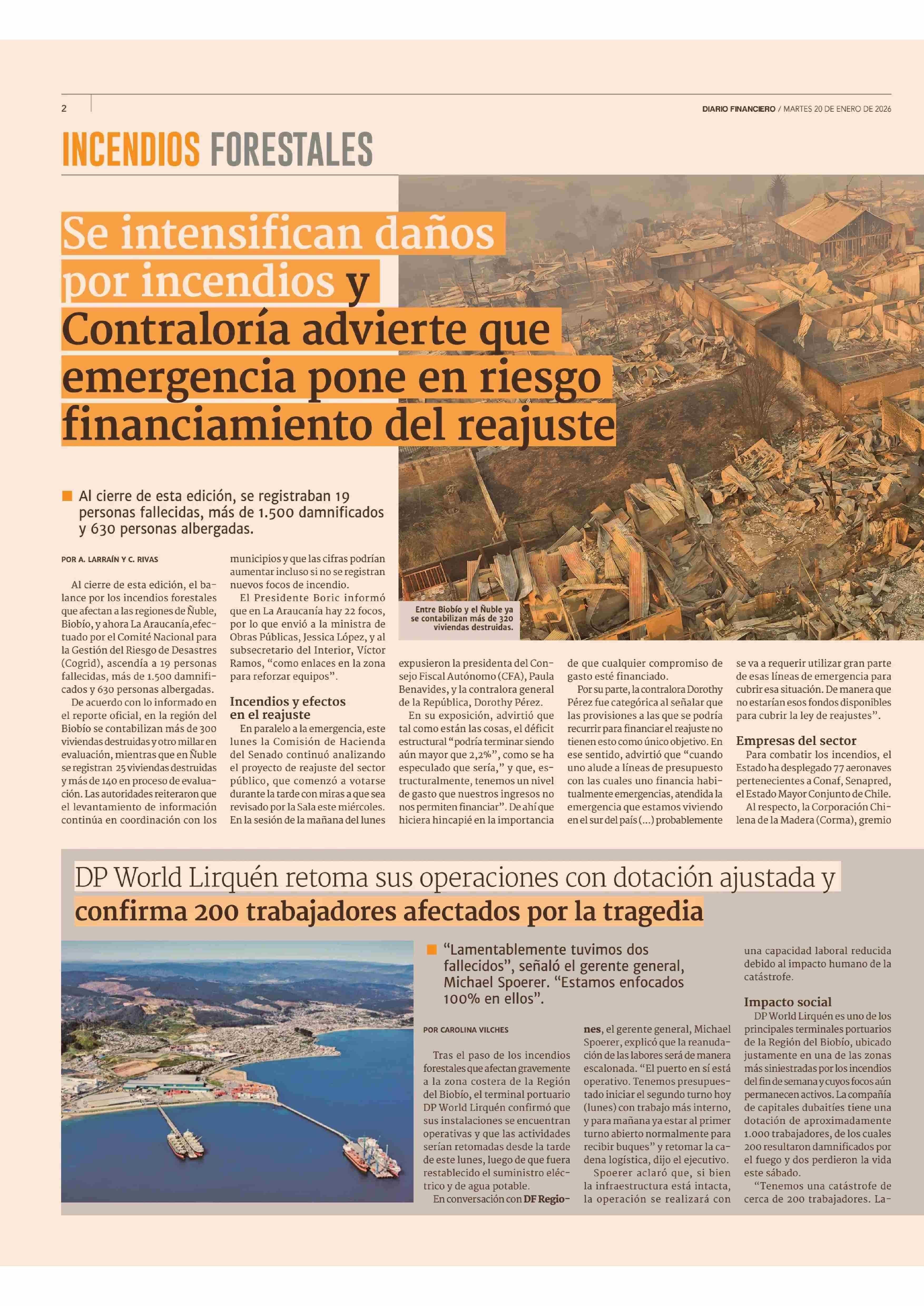 Se intensifican daños por incendios y Contraloría advierte que emergencia pone en riesgo financiamiento del reajuste 20-01-2026 Diario Financiero |