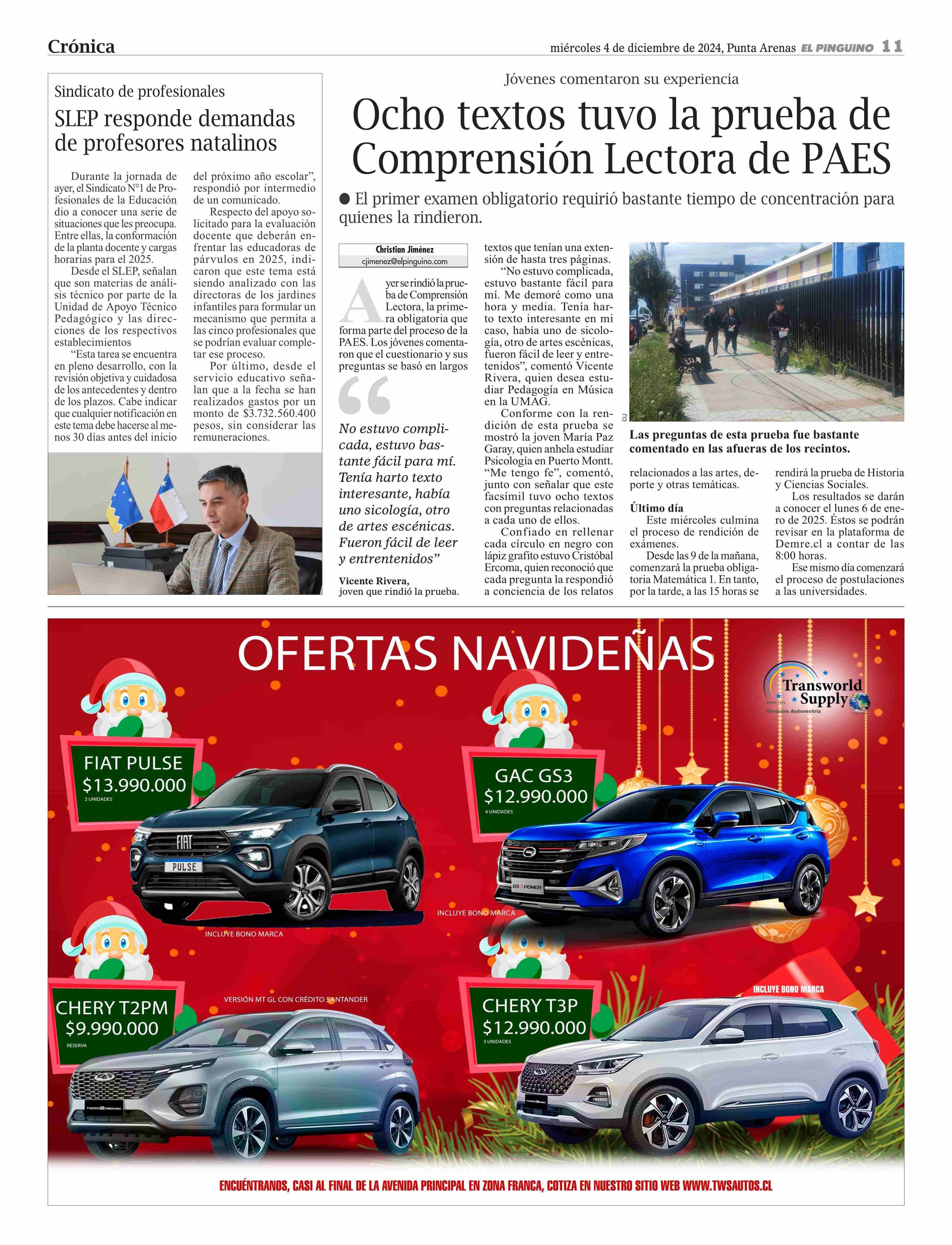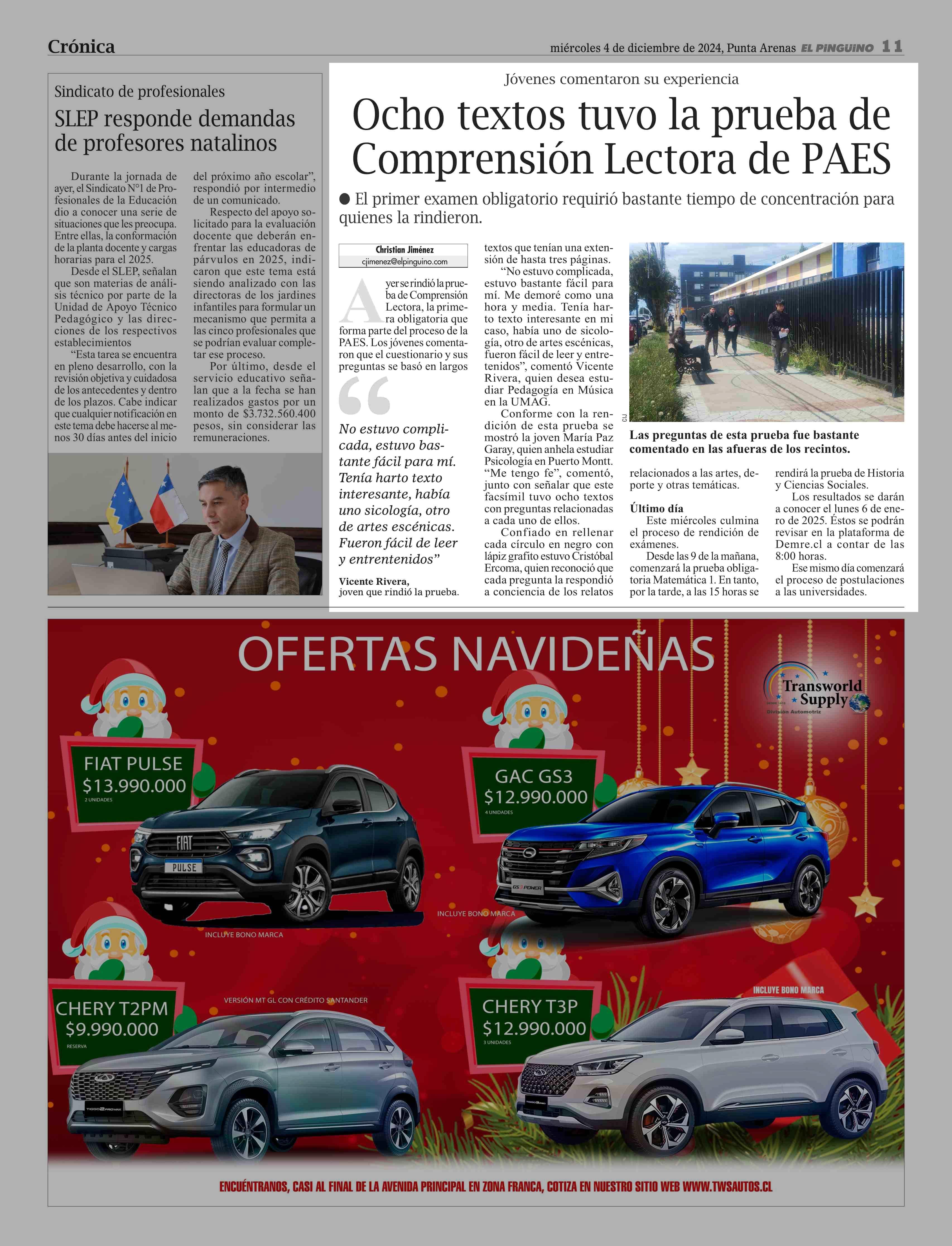 Ocho textos tuvo la prueba de Comprensión Lectora de PAES 04-12-2024 El Pingüino |