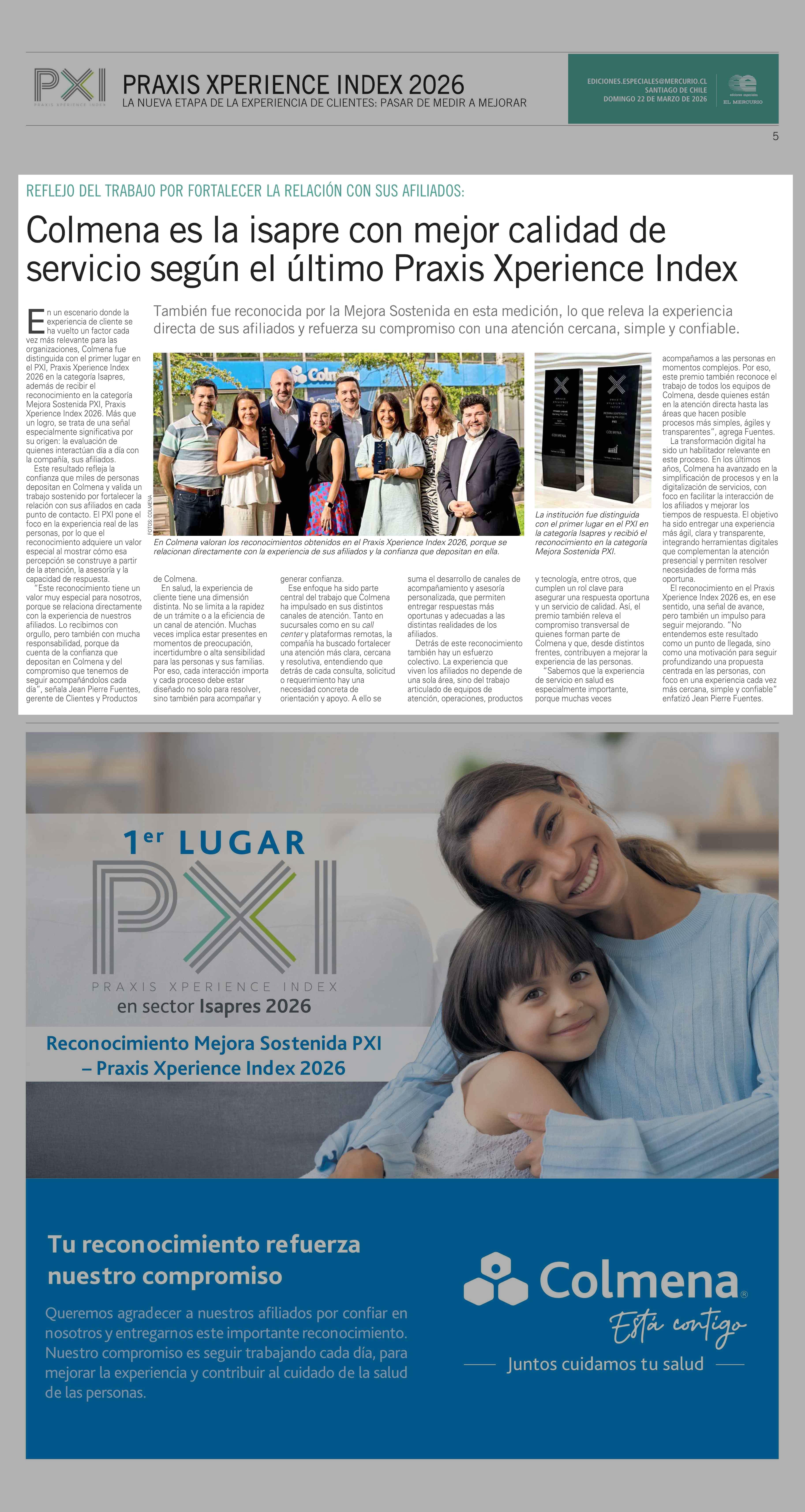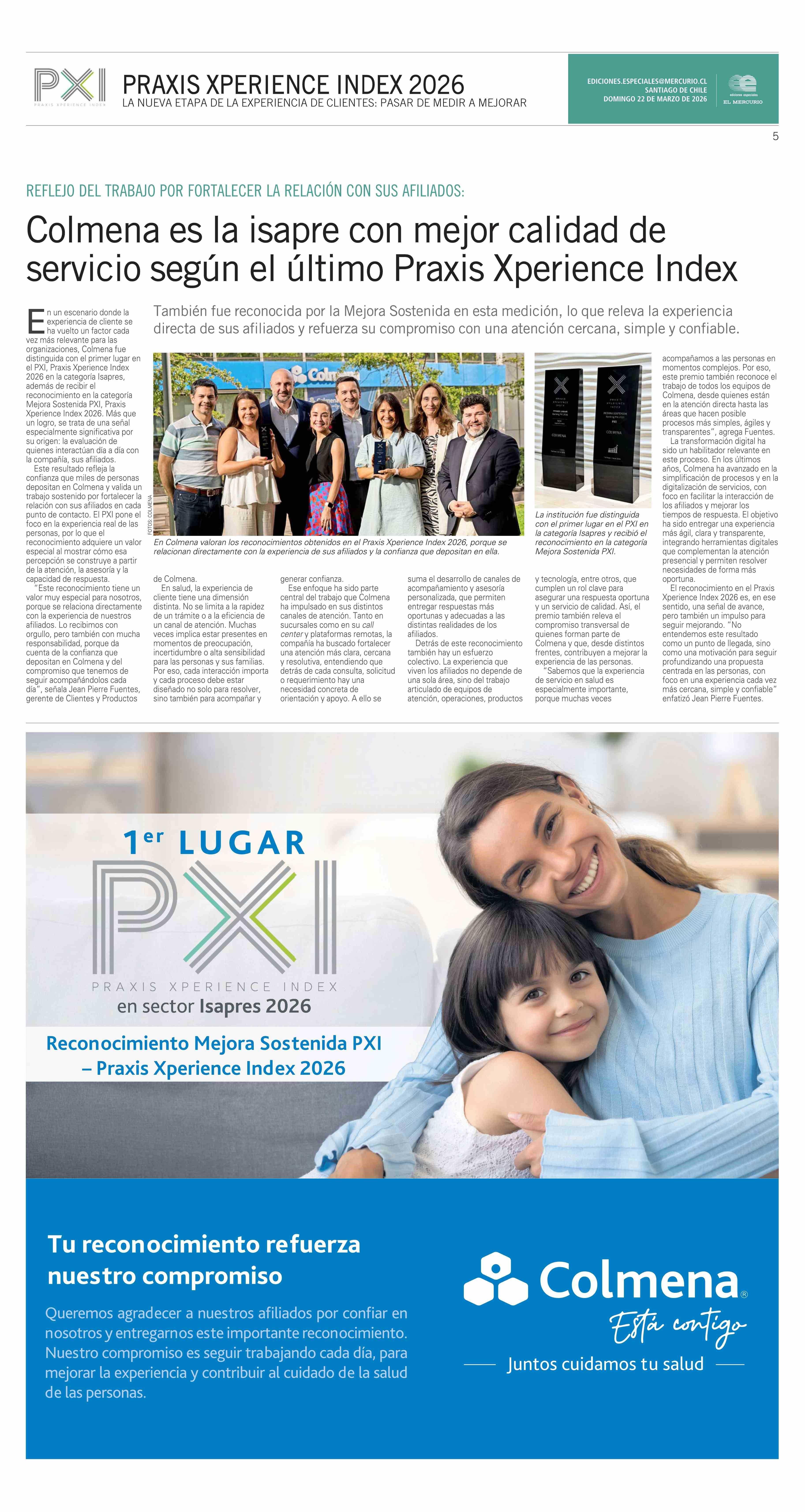 Título: Colmena es la isapre con mejor calidad de servicio según el último Praxis Xperience Index